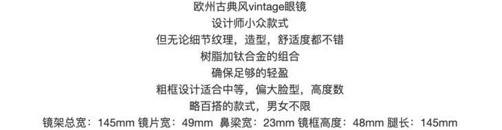 「欧洲古典风格眼镜框」vintage古董眼镜 设计师个性情侣款 斯文眼镜框