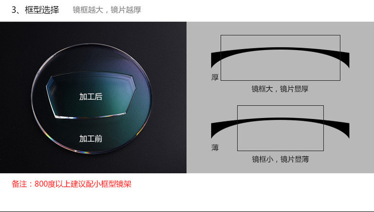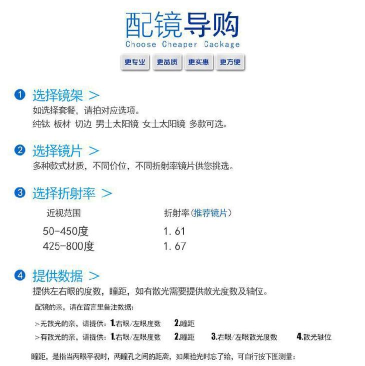 镜片打磨说明:镜片会严格按照您提供的数据装配,因镜片一但加工就无法再用,所以镜片不承担退还承诺,如若本店失误,免费包退包换。