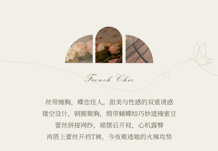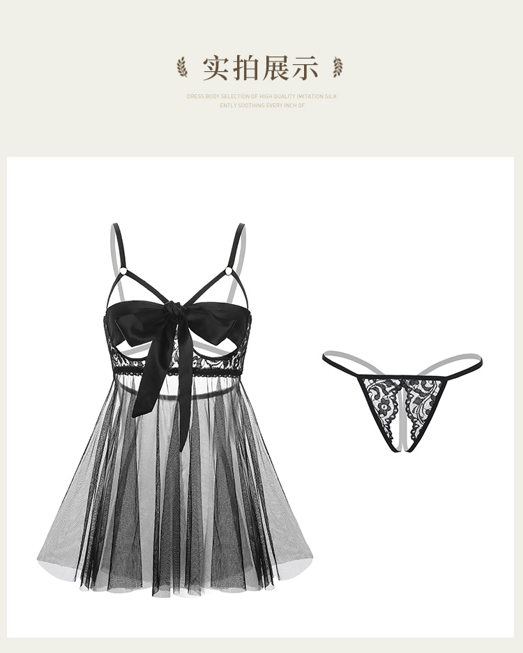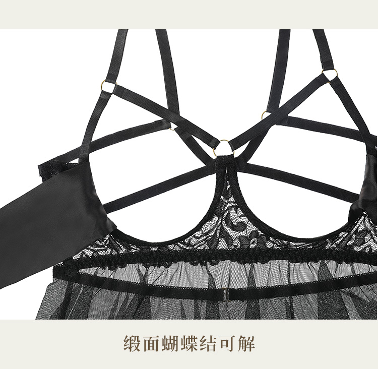 【轻情趣】霏慕 蝴蝶结半露胸含钢圈睡裙 情趣内衣7762