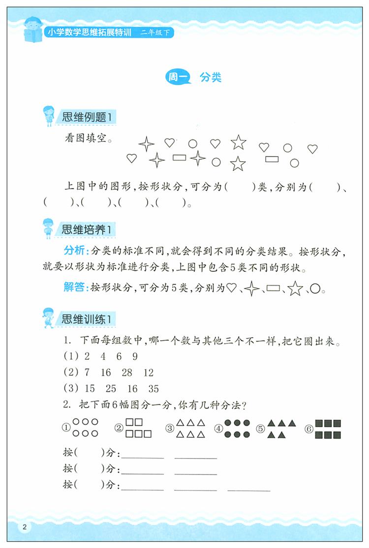 小学数学思维拓展特训二年级下册】 通用版2年级数学同步思维能力
