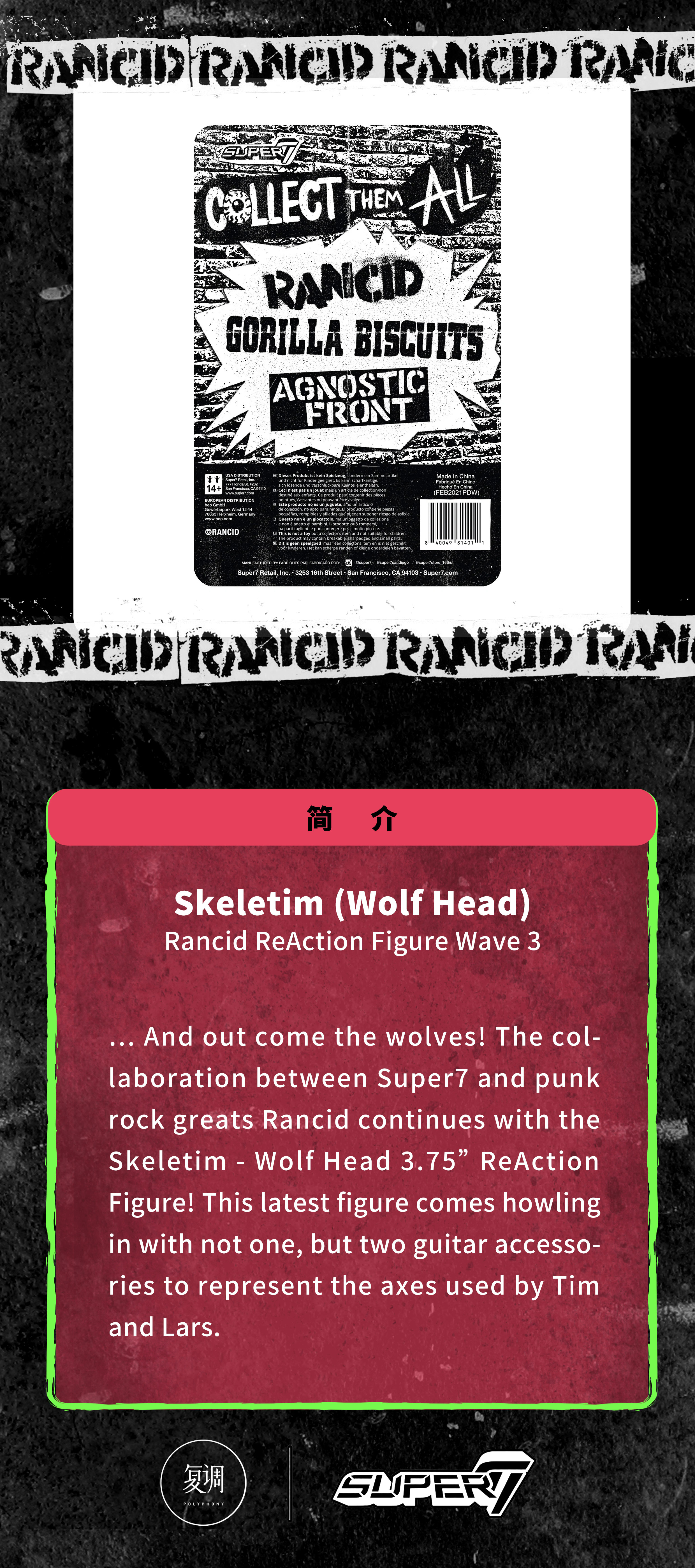 现货 Super7 Rancid Skeletim 狼头版 系列3 挂卡