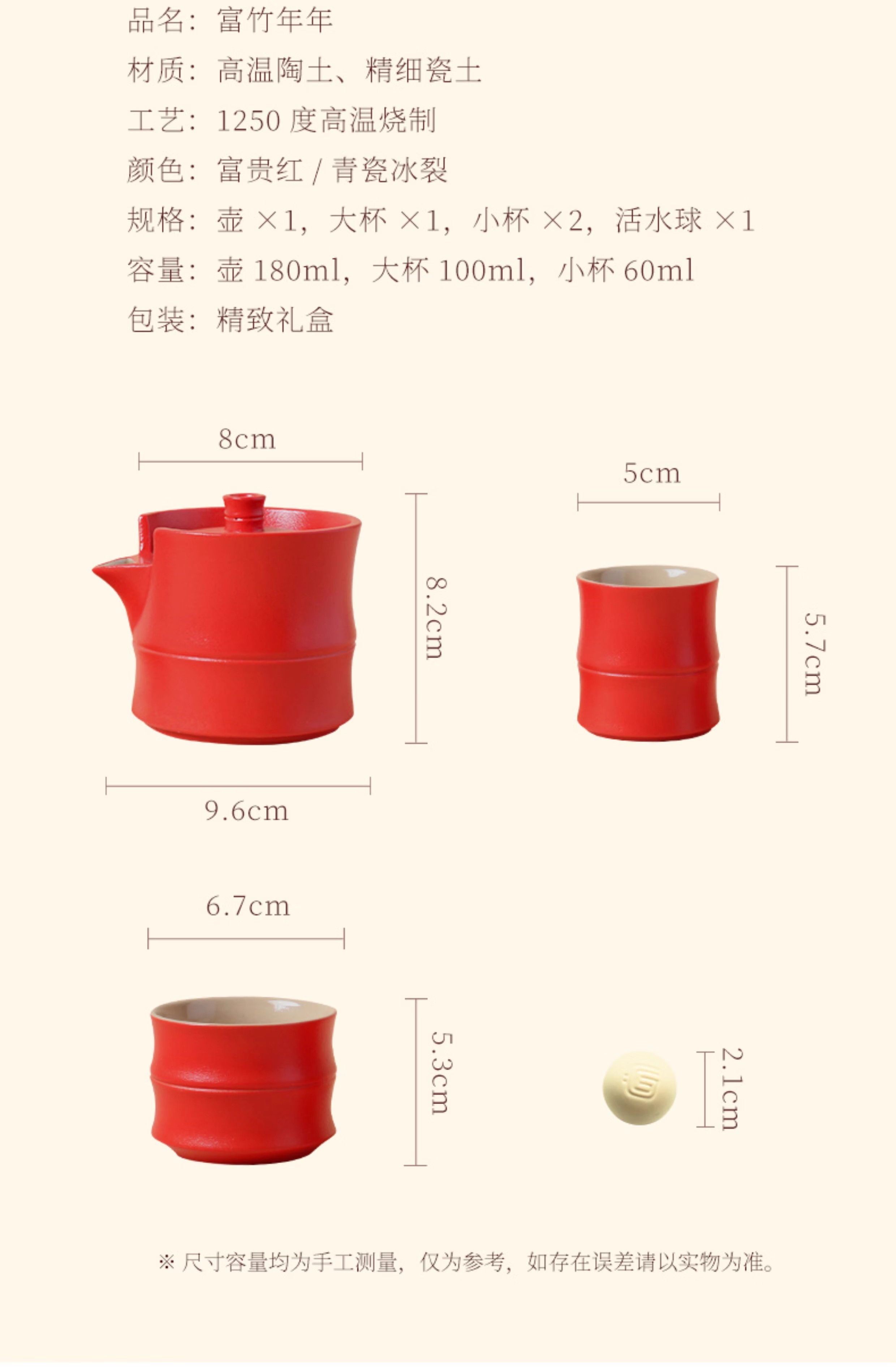 【彼达思】 陆宝新年礼 富竹年年茶组 壶1大杯1小杯2活水球1