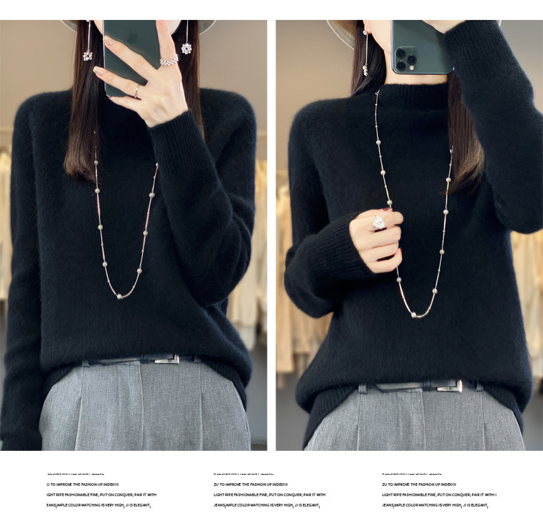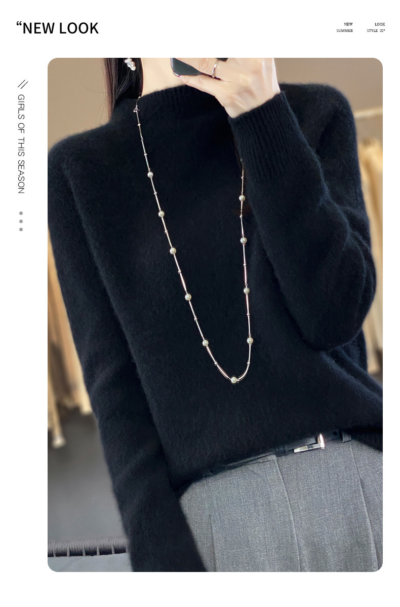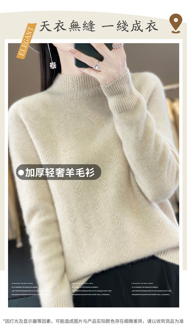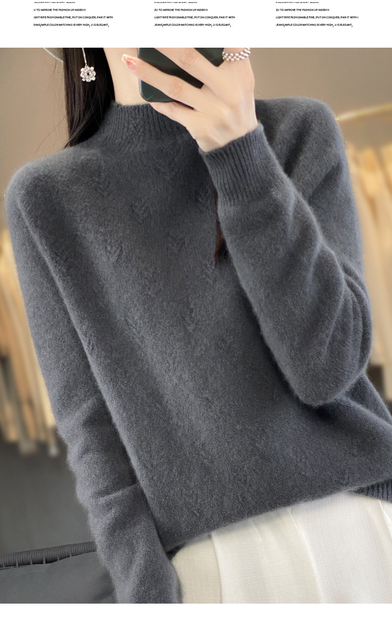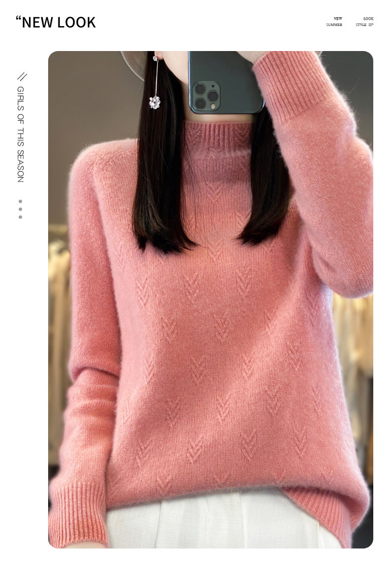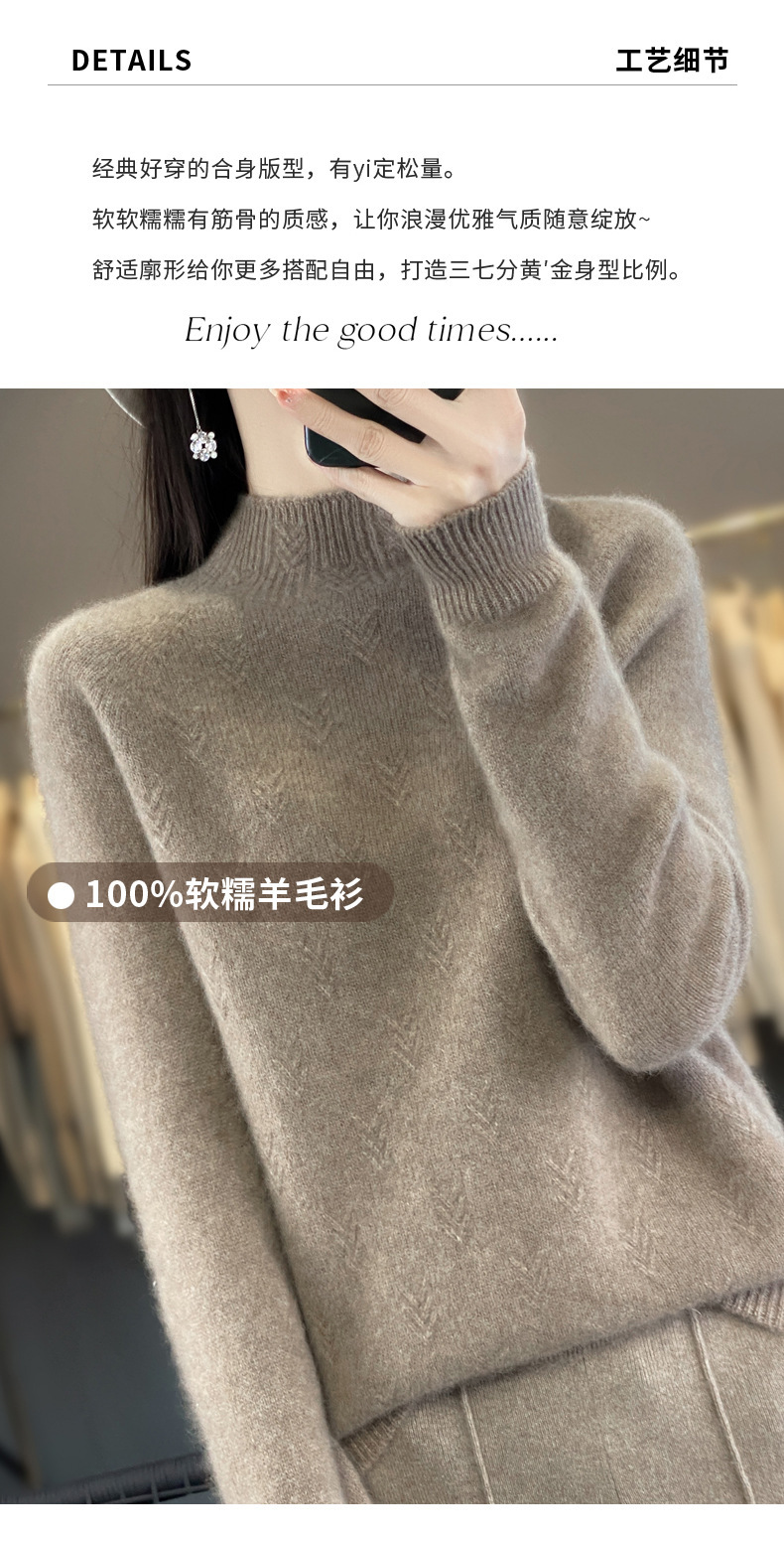 QH-NJRG866毛衣感慵懒风针织衫上衣秋冬新款半高领羊毛衫女纯色套头长袖