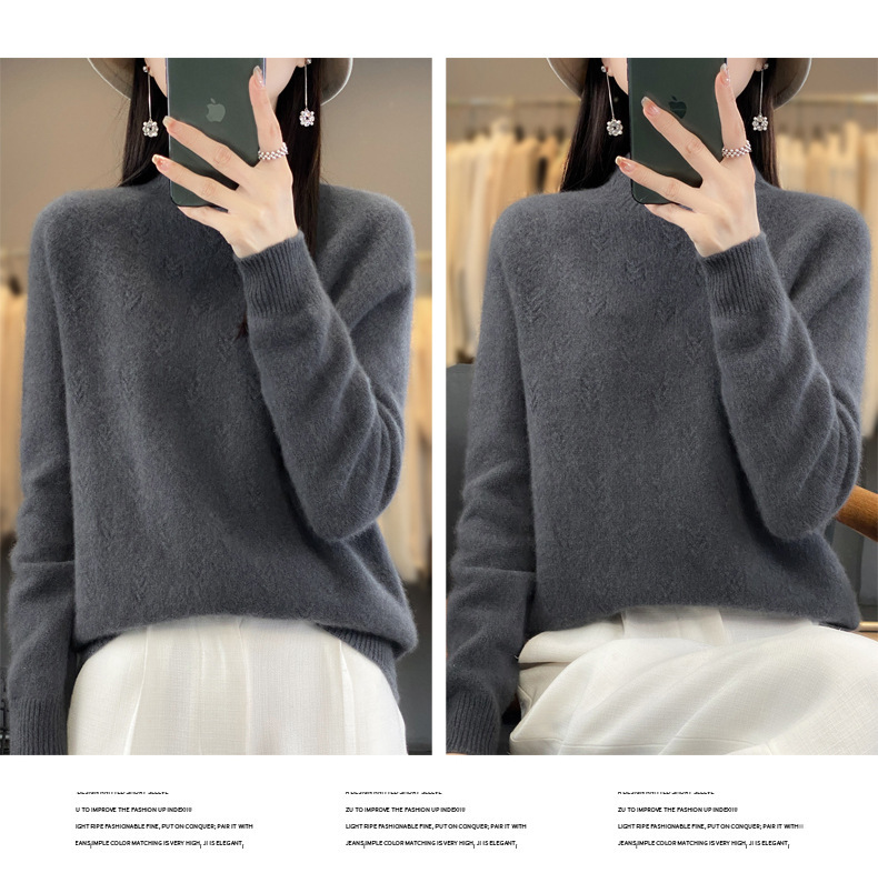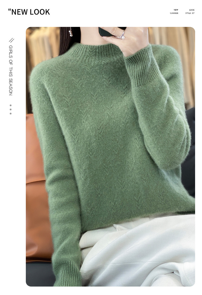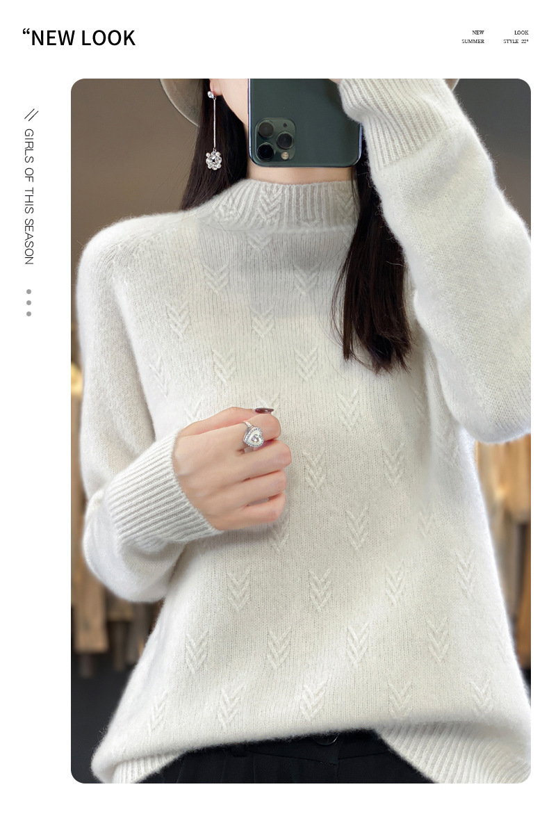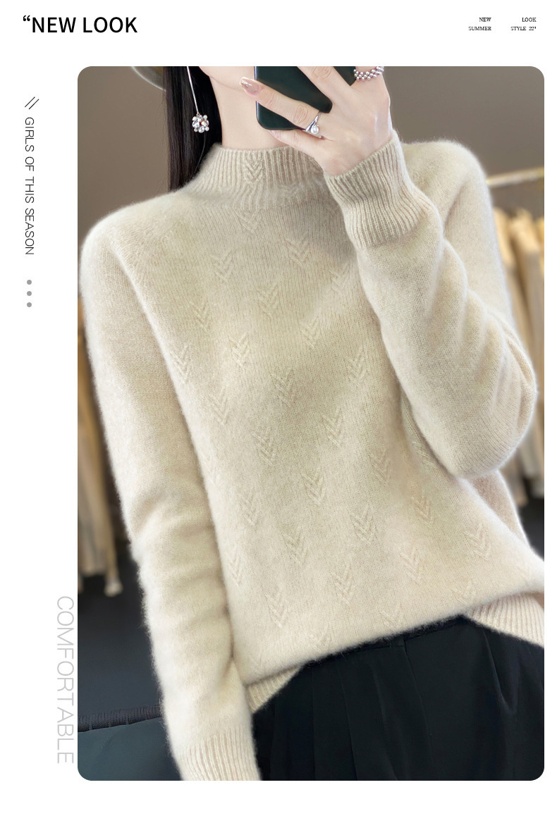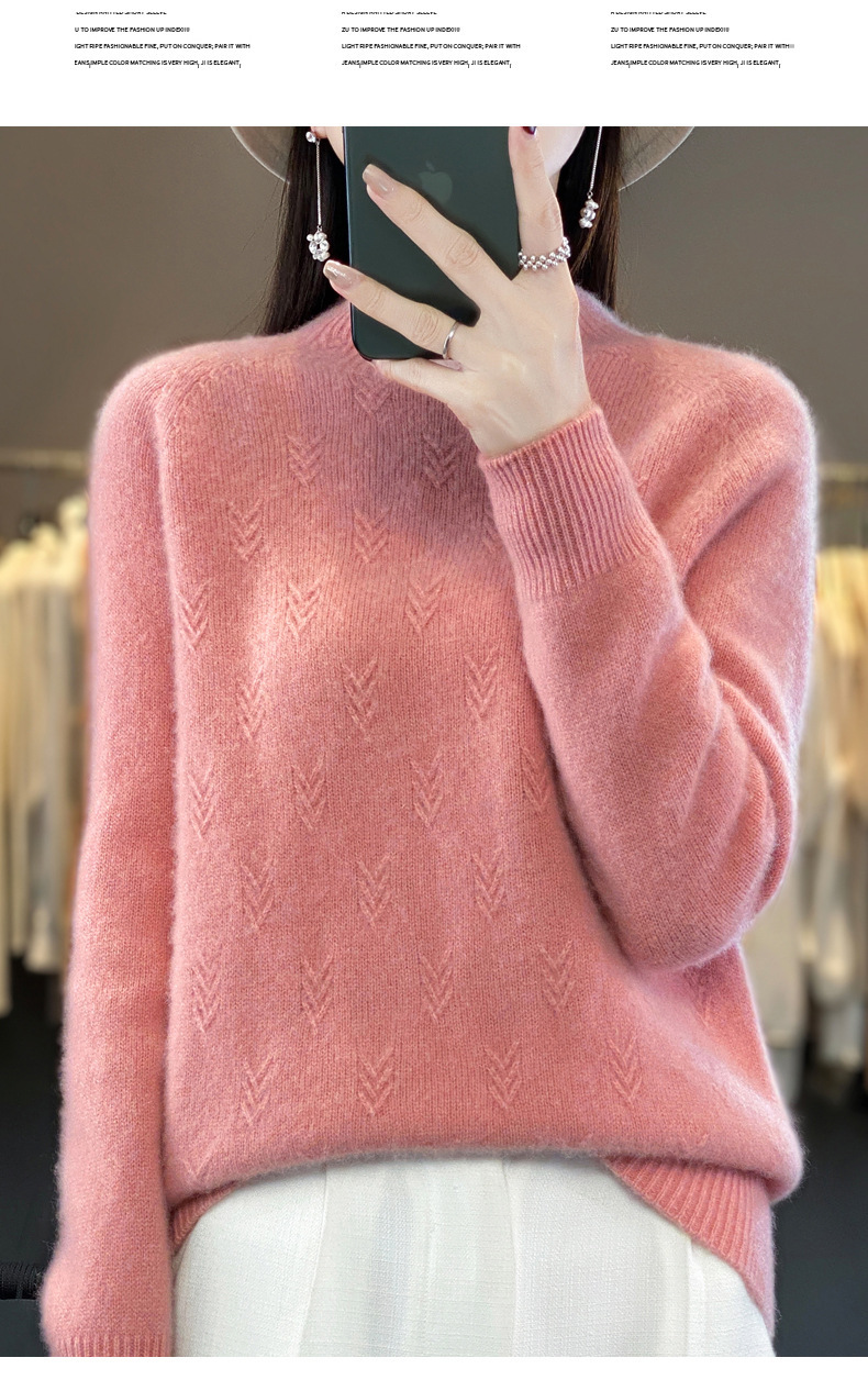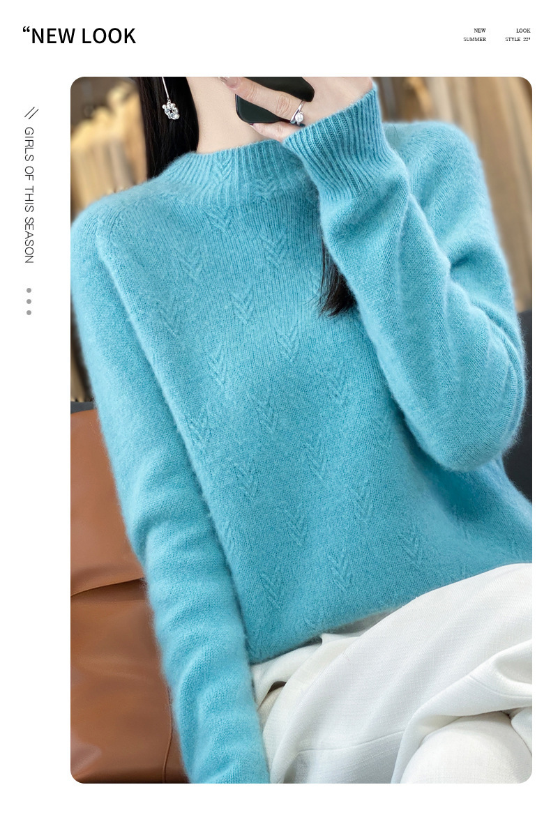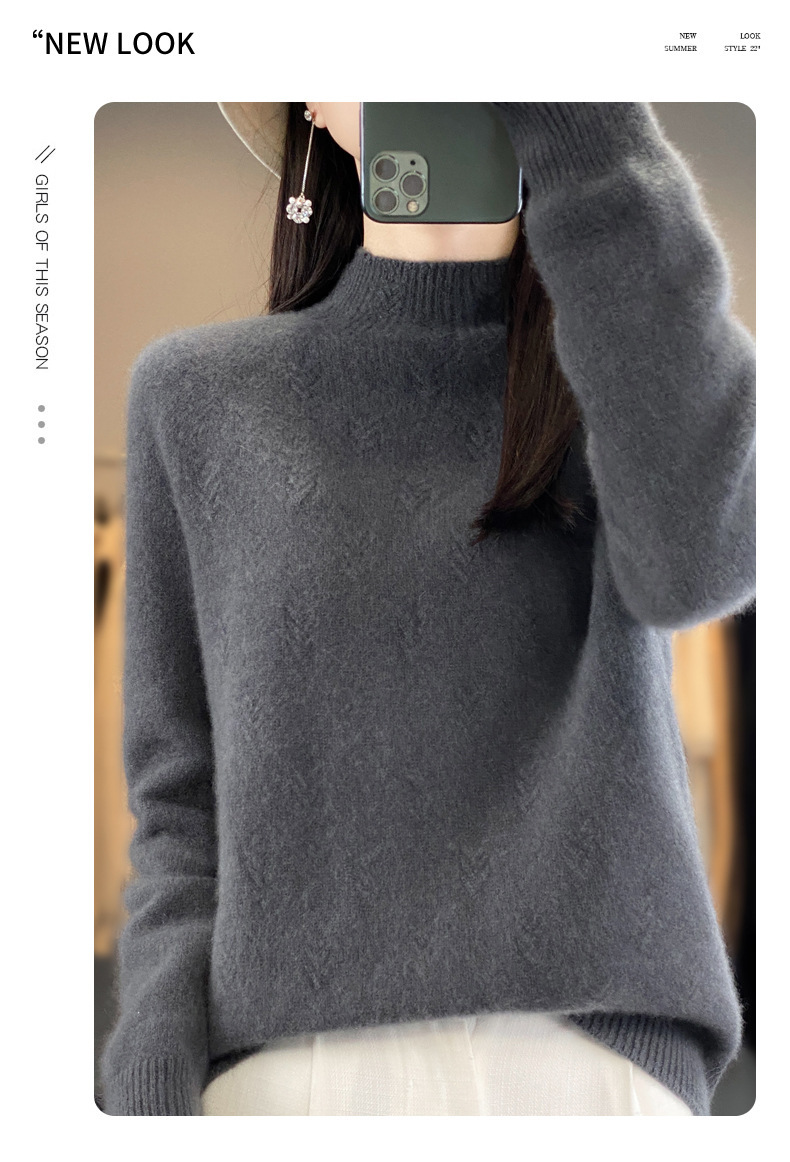 QH-NJRG866毛衣感慵懒风针织衫上衣秋冬新款半高领羊毛衫女纯色套头长袖