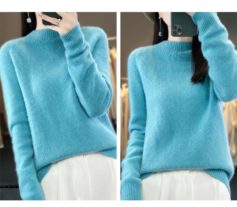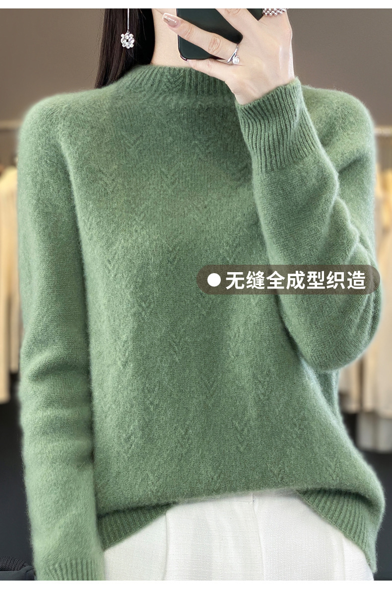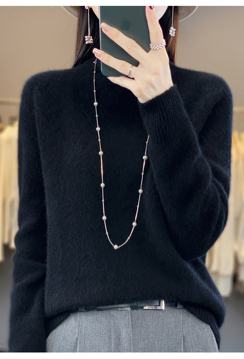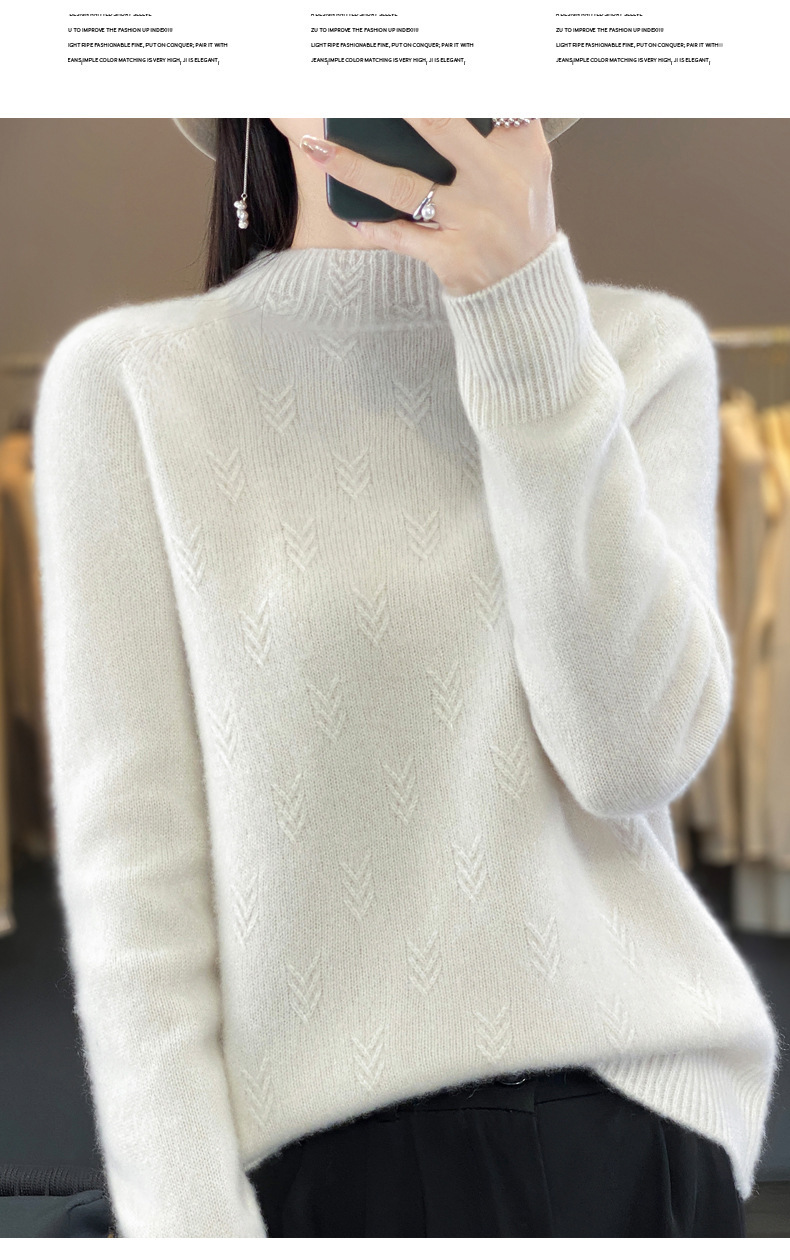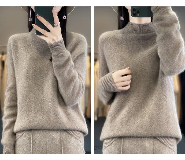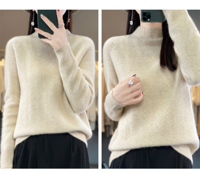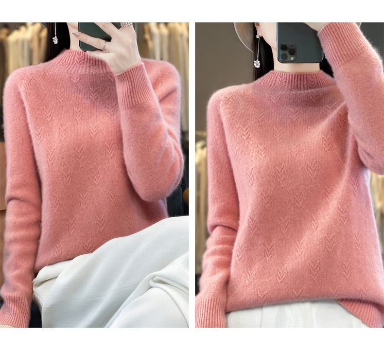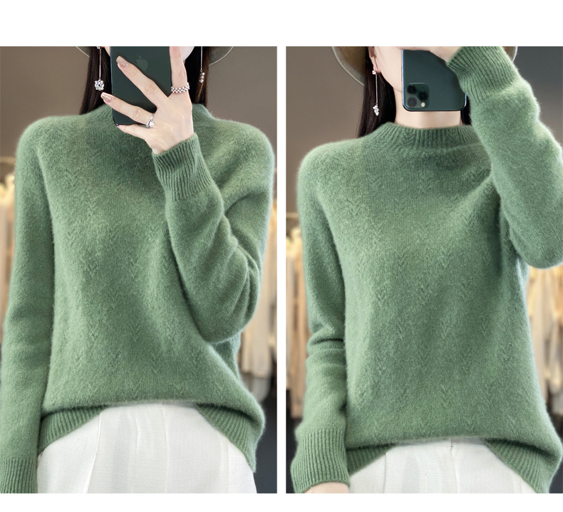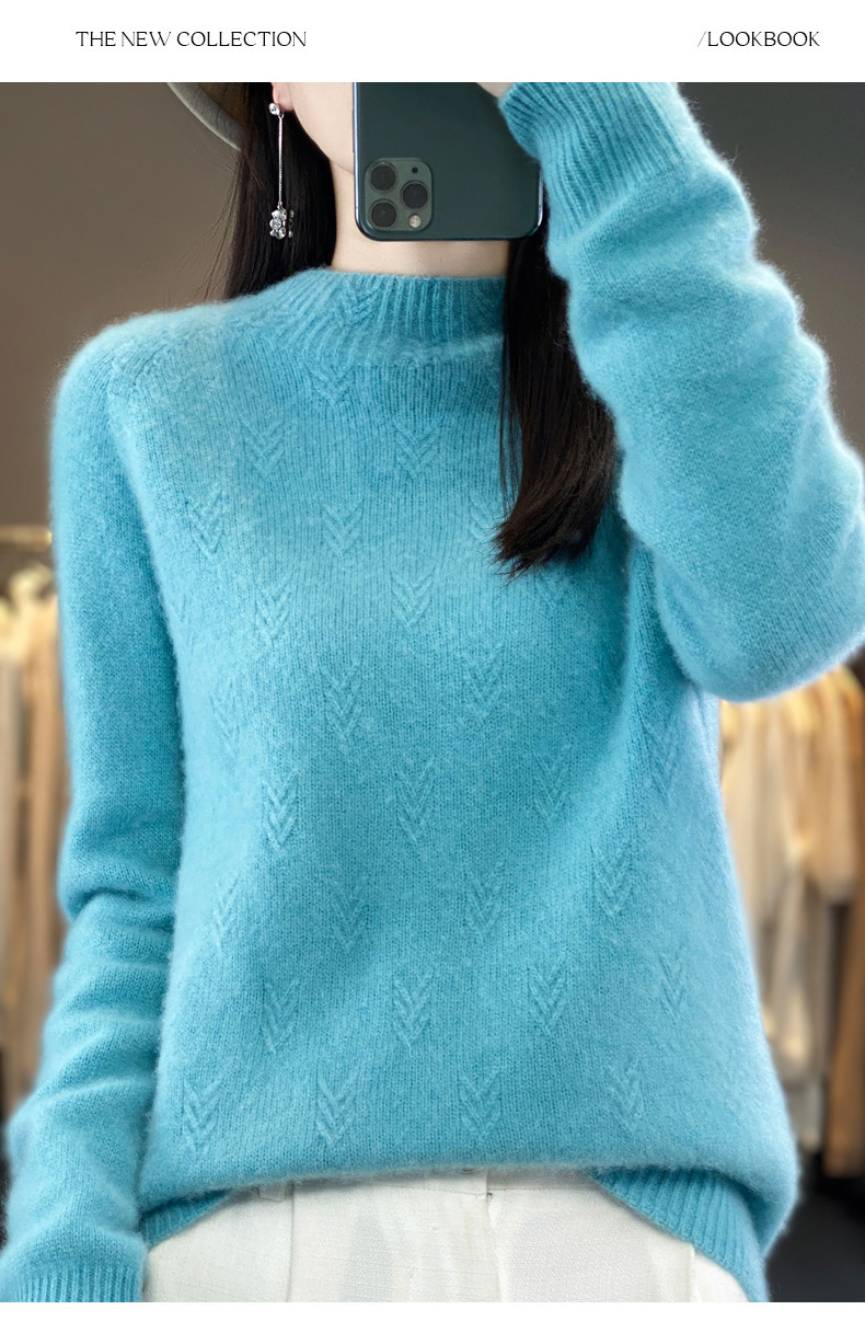 QH-NJRG866毛衣感慵懒风针织衫上衣秋冬新款半高领羊毛衫女纯色套头长袖