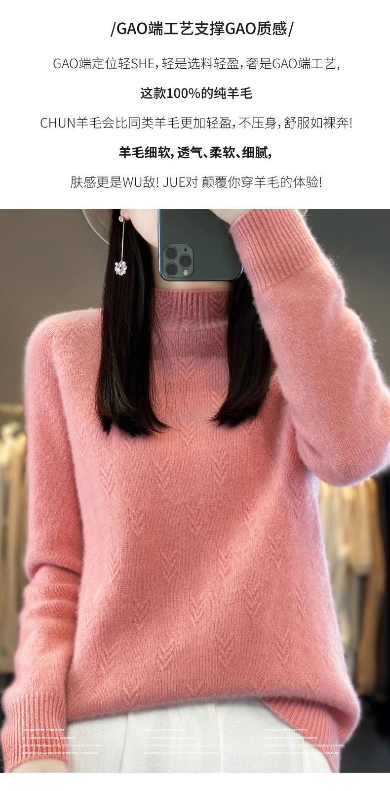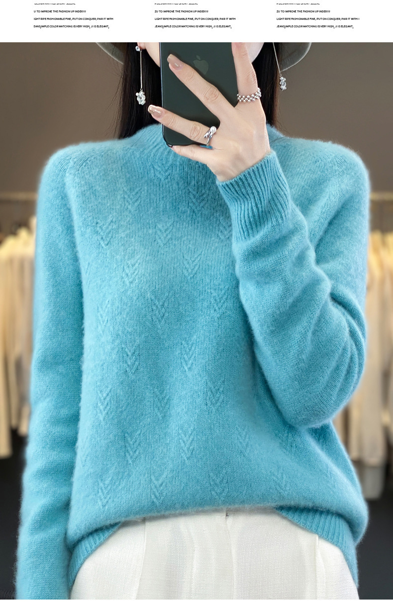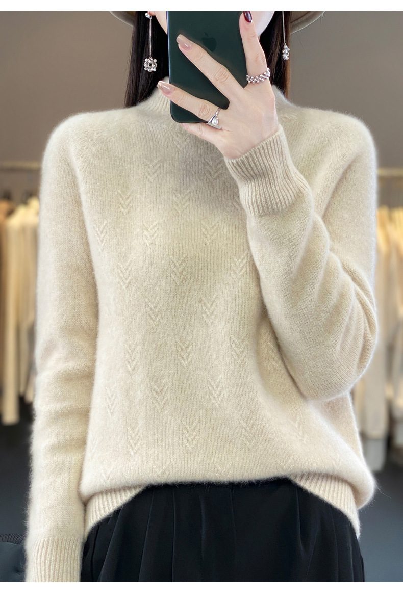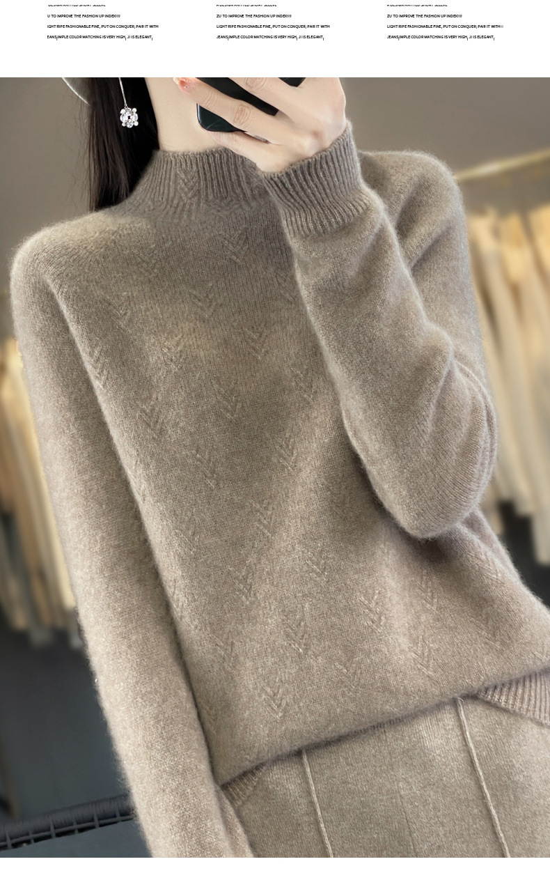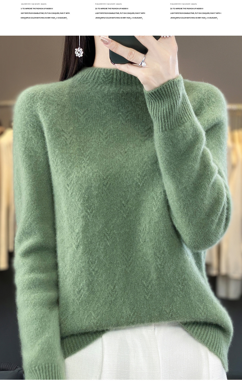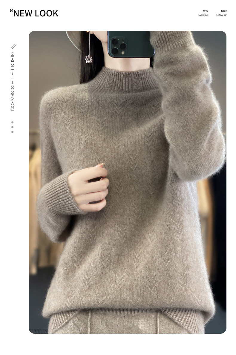 QH-NJRG866毛衣感慵懒风针织衫上衣秋冬新款半高领羊毛衫女纯色套头长袖
