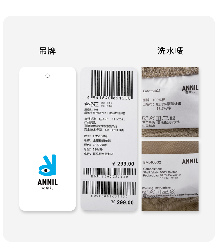 男女童全腰梭织单裤春季新款安奈儿童装EM516002