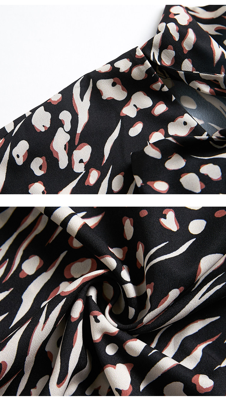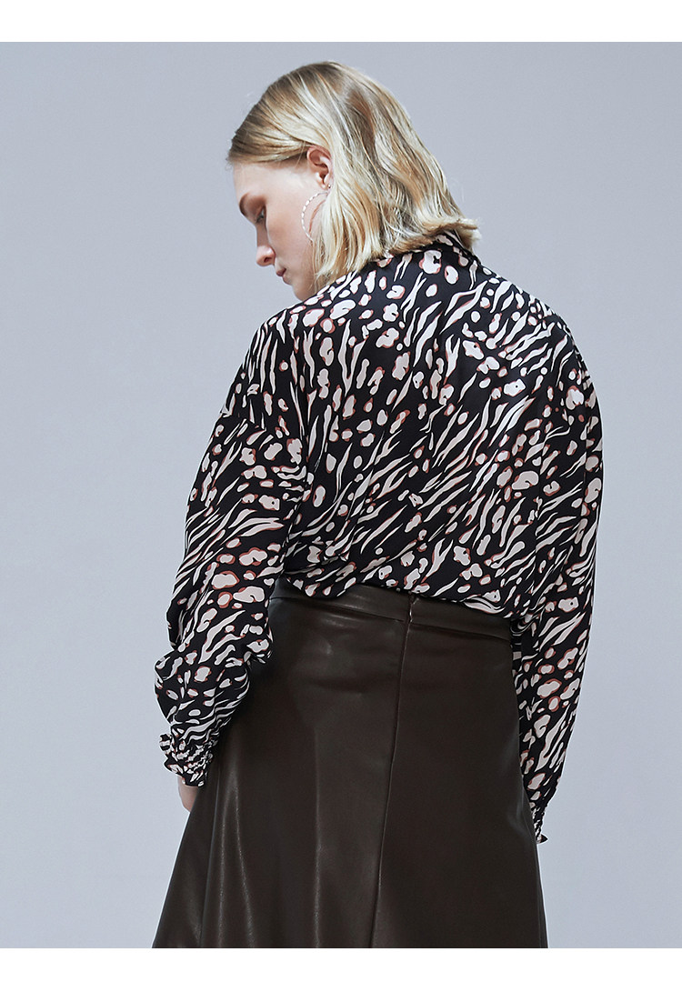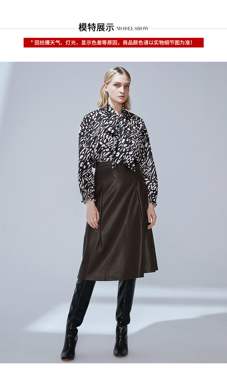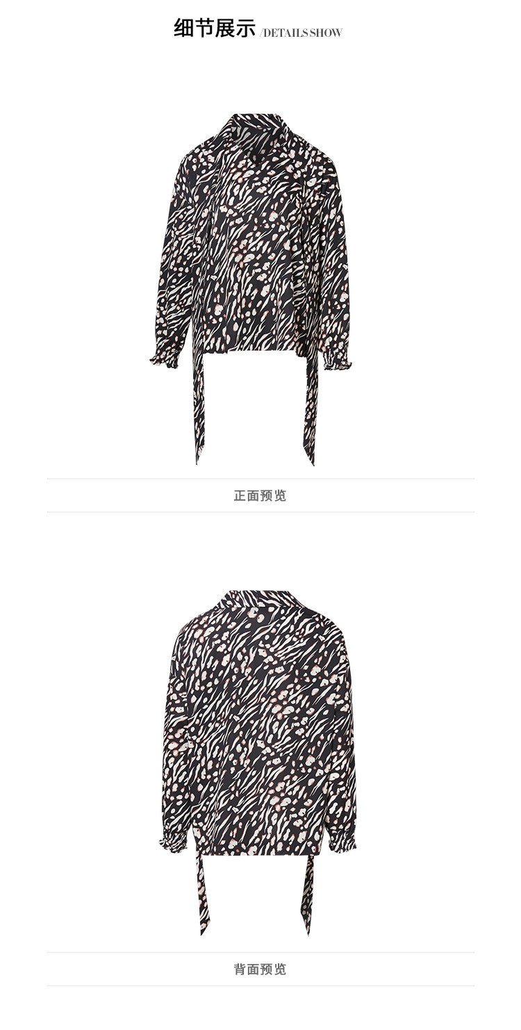 VIMAGE纬漫纪秋款时尚复古高领系带泡泡袖印花衬衫女上衣V1413009