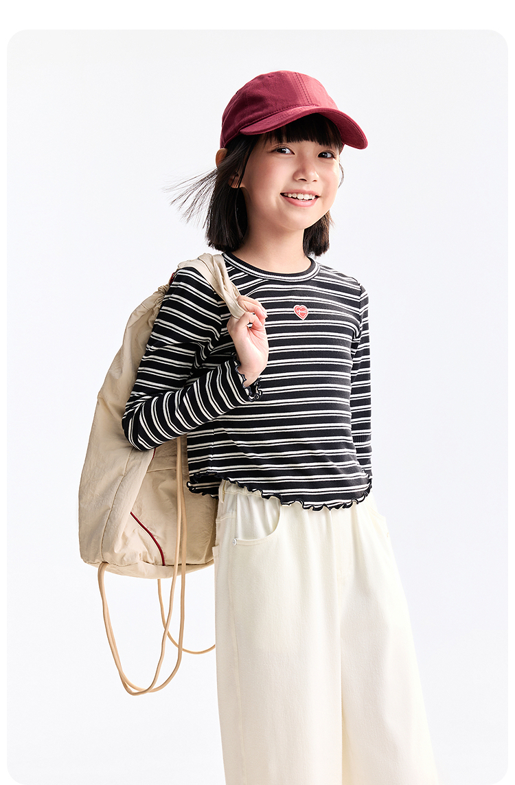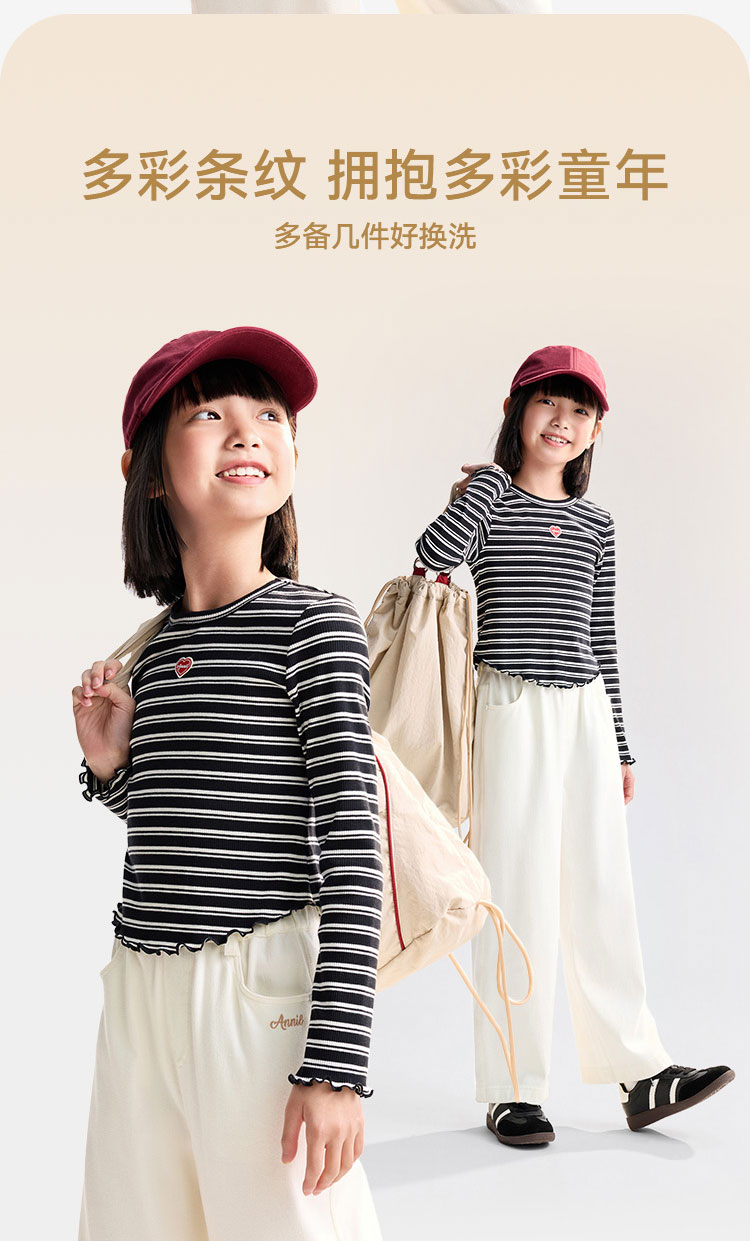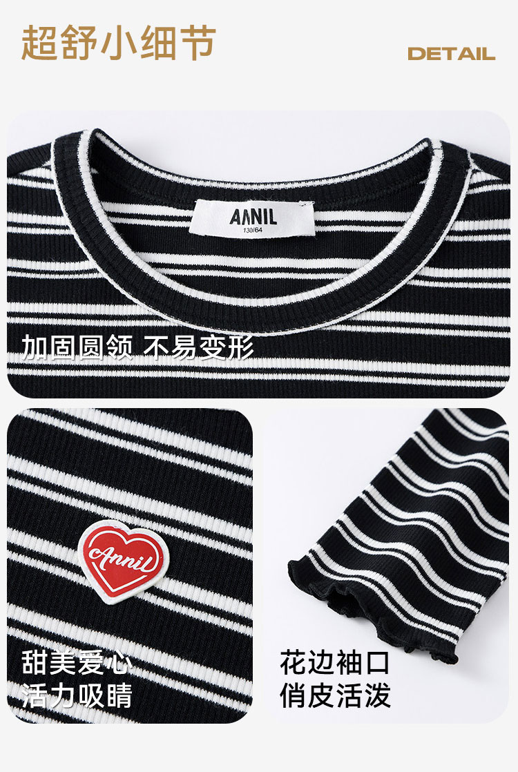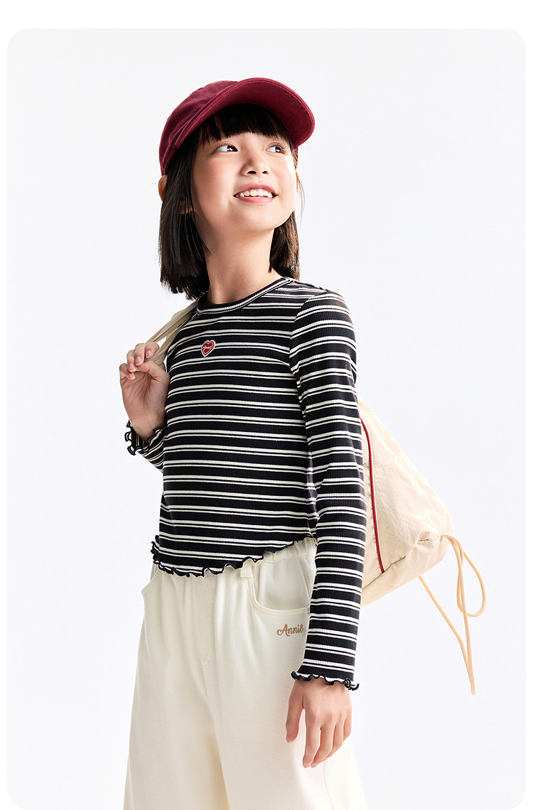 【甜美短款上衣】女童时尚弧形下摆T恤外穿内搭圆领长袖针织衫秋季新款安奈儿童装EG531572