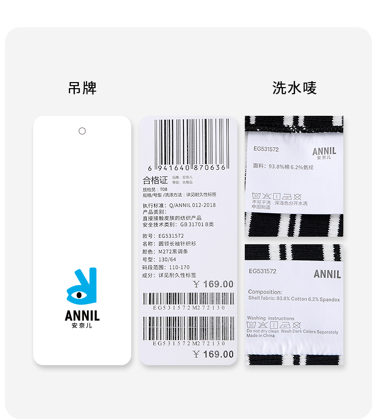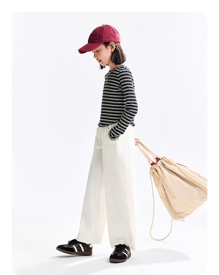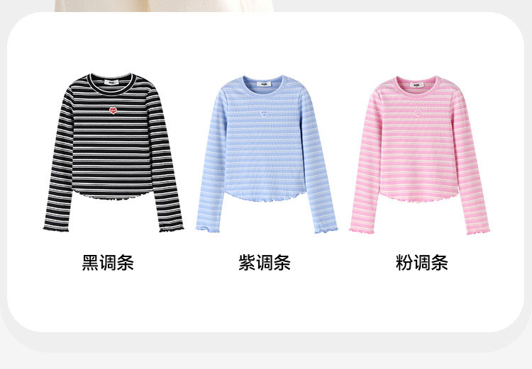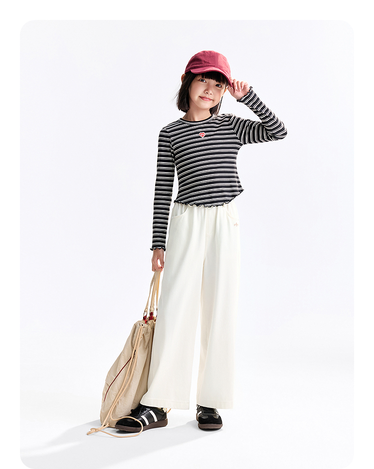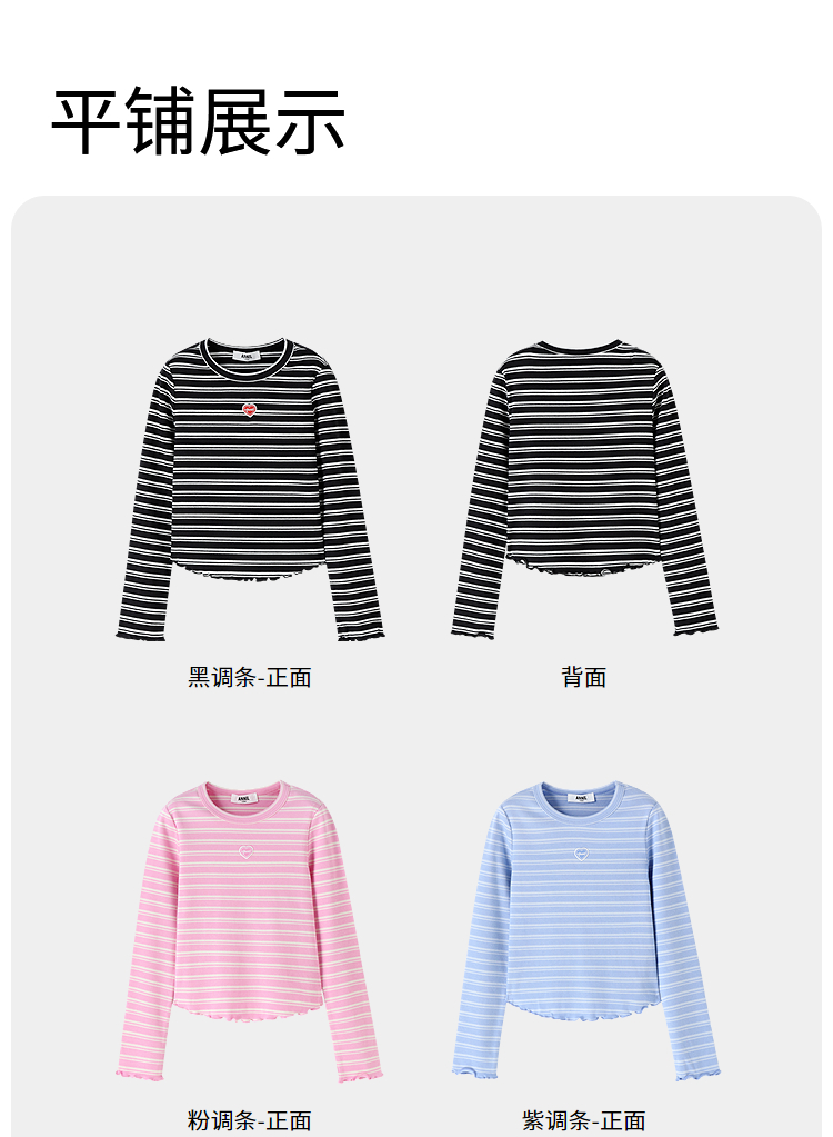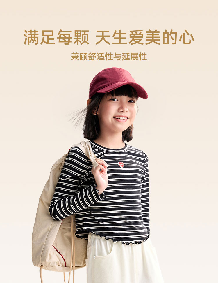 【甜美短款上衣】女童时尚弧形下摆T恤外穿内搭圆领长袖针织衫秋季新款安奈儿童装EG531572