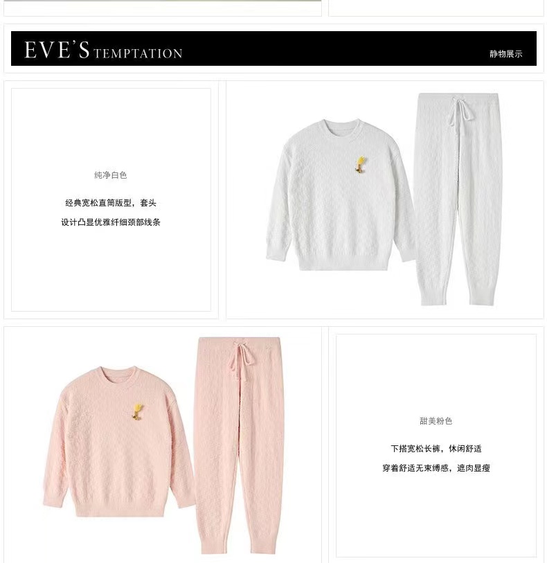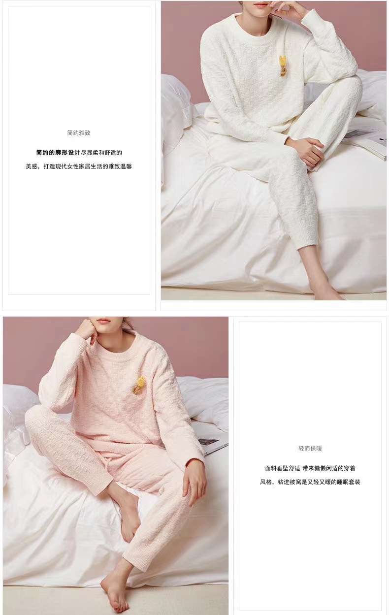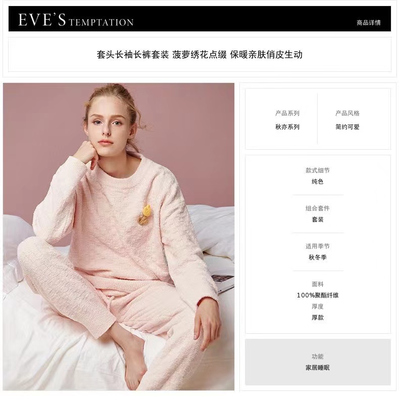 百货世界-夏娃的诱惑秋亦组女士秋冬保暖珊瑚绒睡衣女时尚套头家居服两件套均码(适合80-140斤)