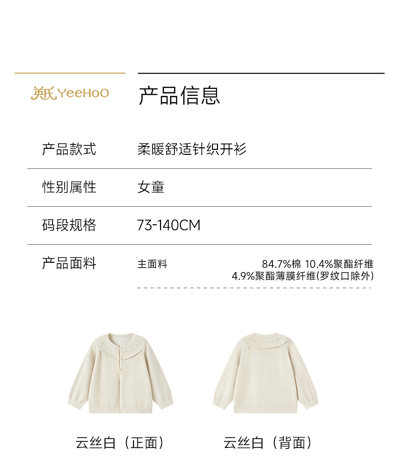 【商场同款】英氏儿童针织衫女童短毛衫外套春夏新款中小童毛衫