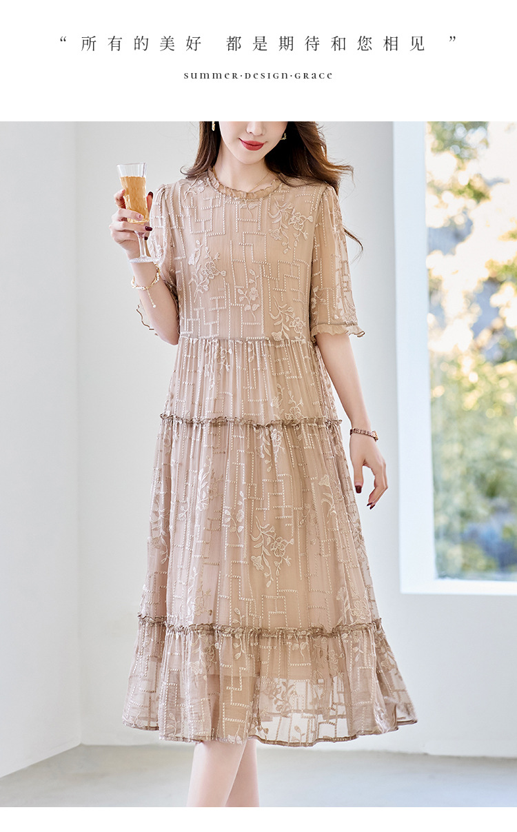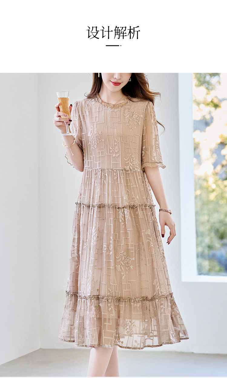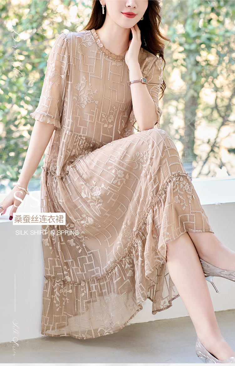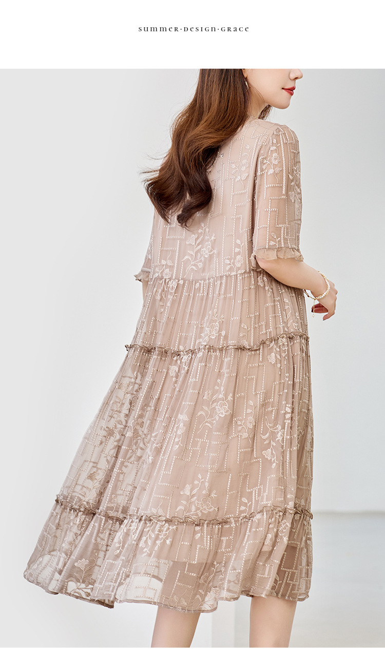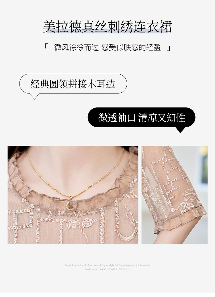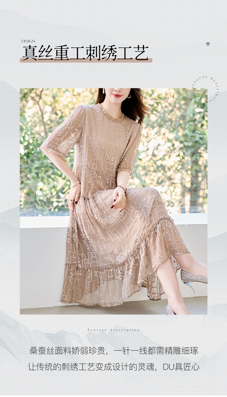 福利款~丁摩 真丝原创女装奢华重工刺绣真丝连衣裙女拼接A字裙4ZF-96960