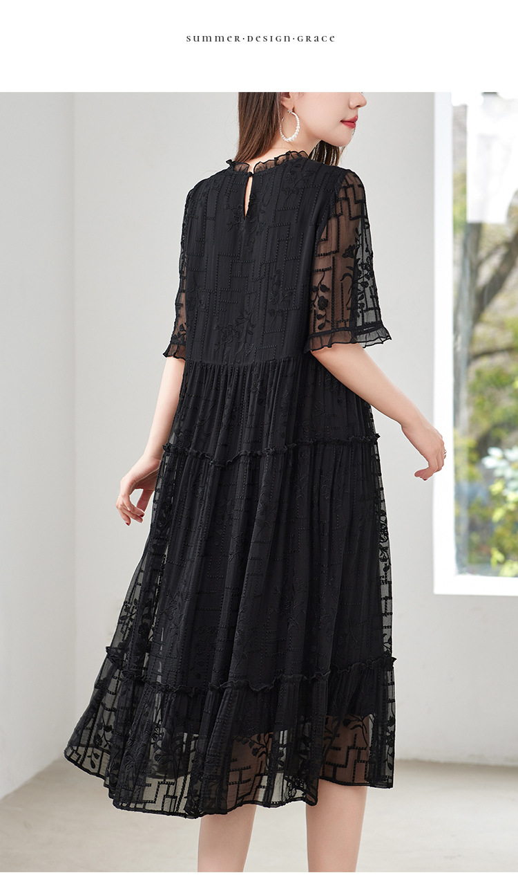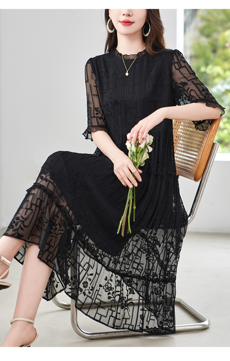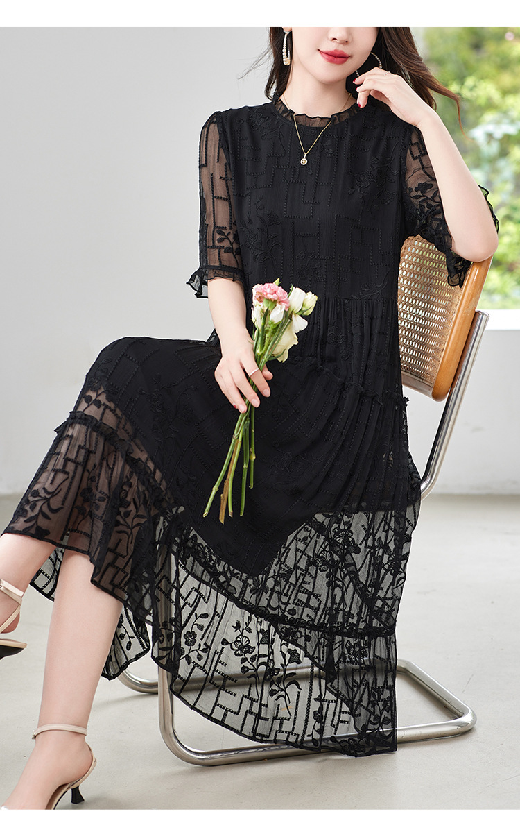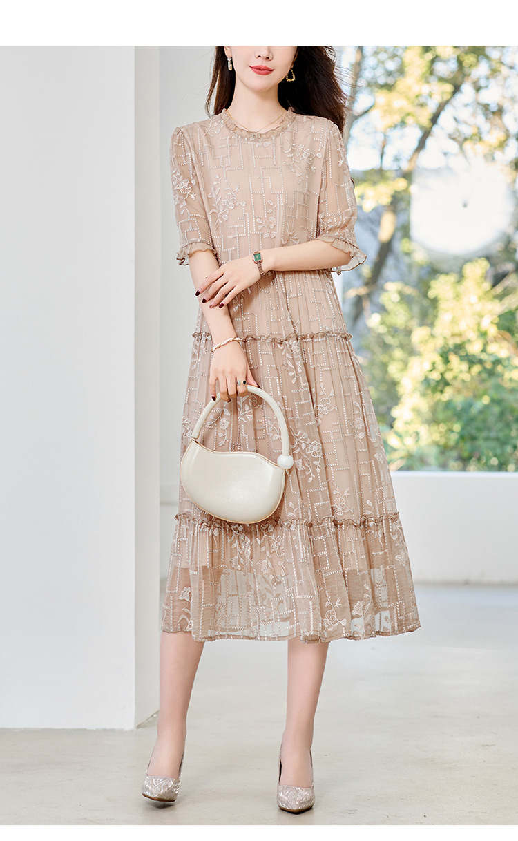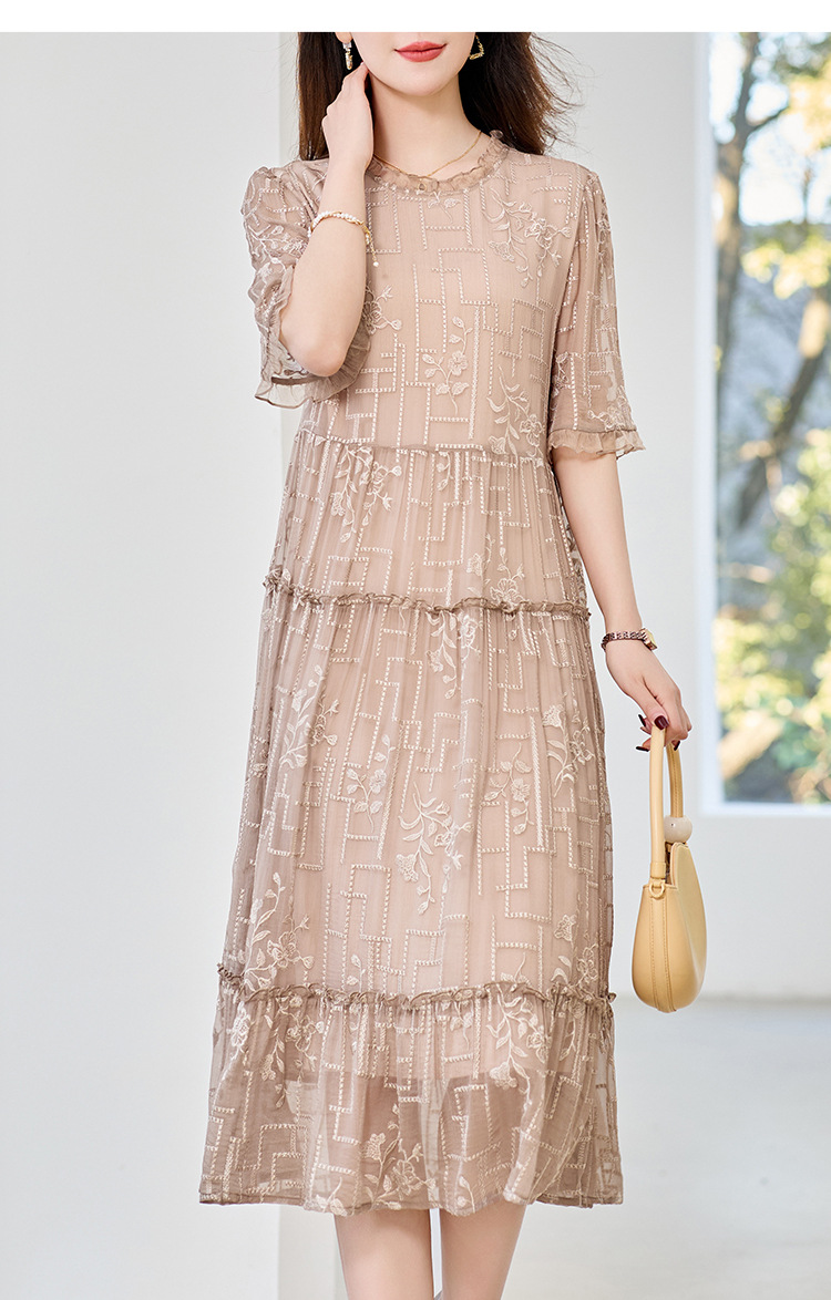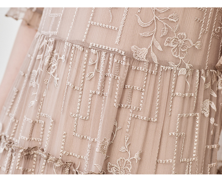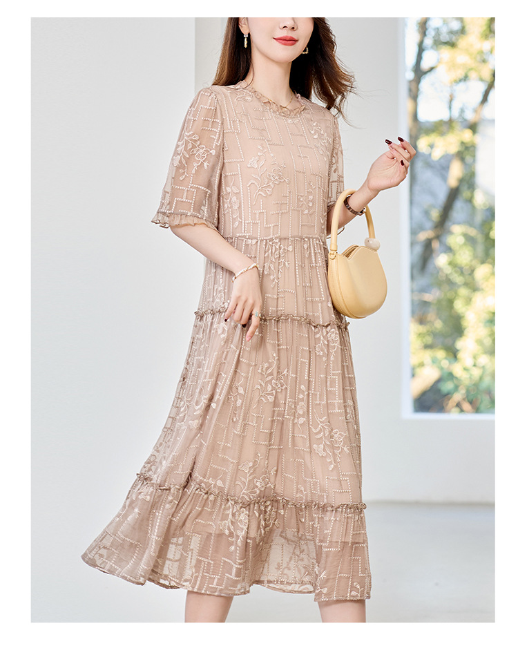 福利款~丁摩 真丝原创女装奢华重工刺绣真丝连衣裙女拼接A字裙4ZF-96960