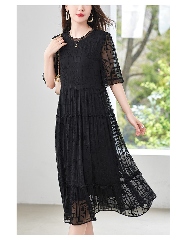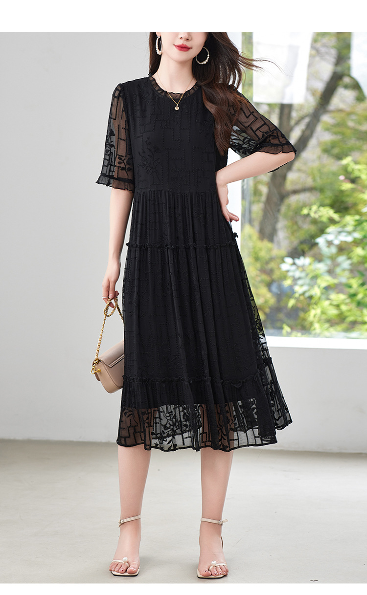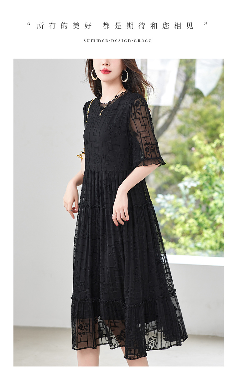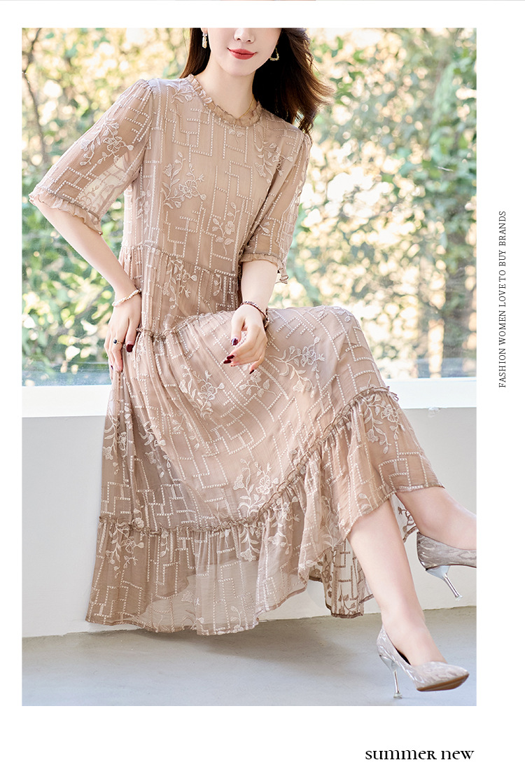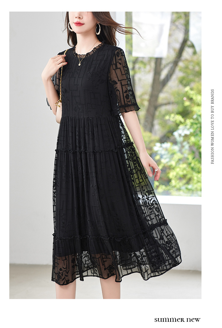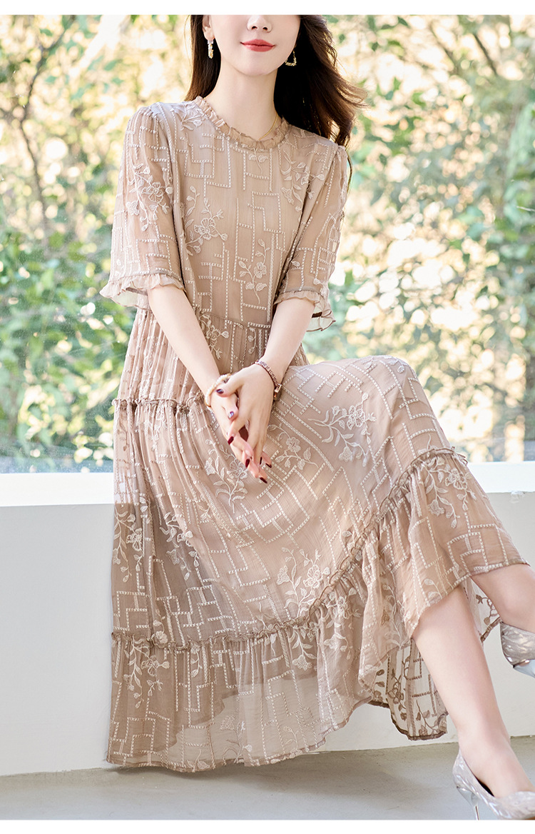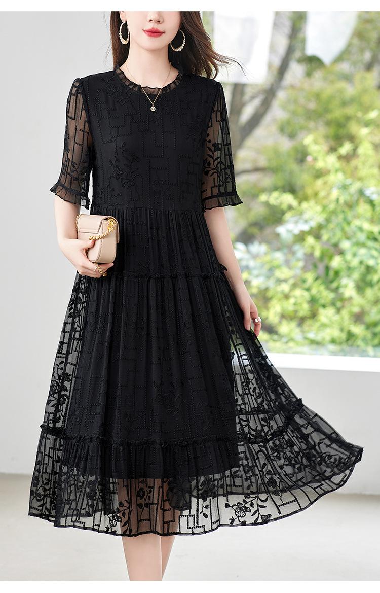 福利款~丁摩 真丝原创女装奢华重工刺绣真丝连衣裙女拼接A字裙4ZF-96960