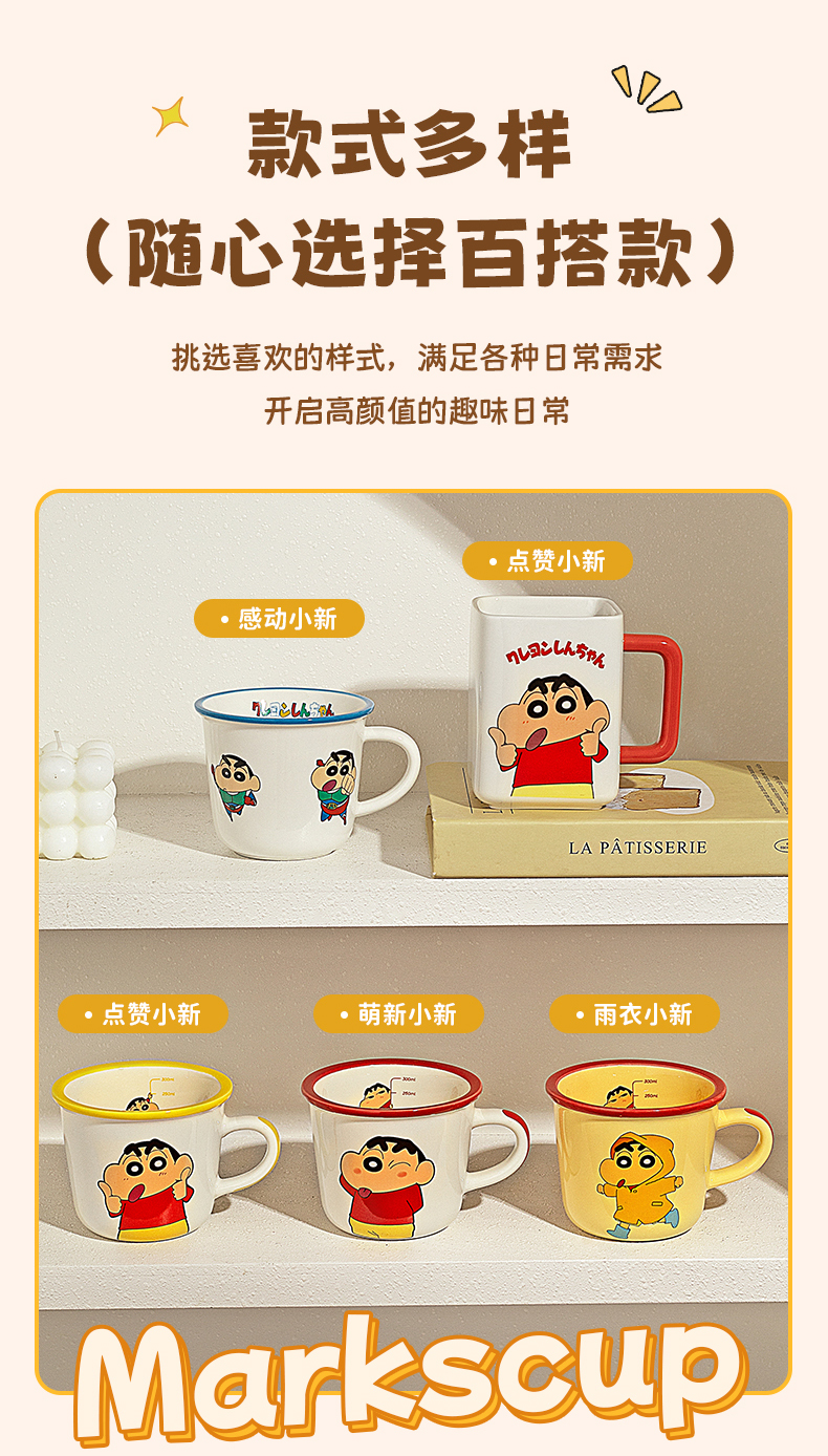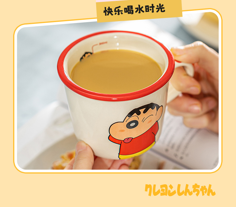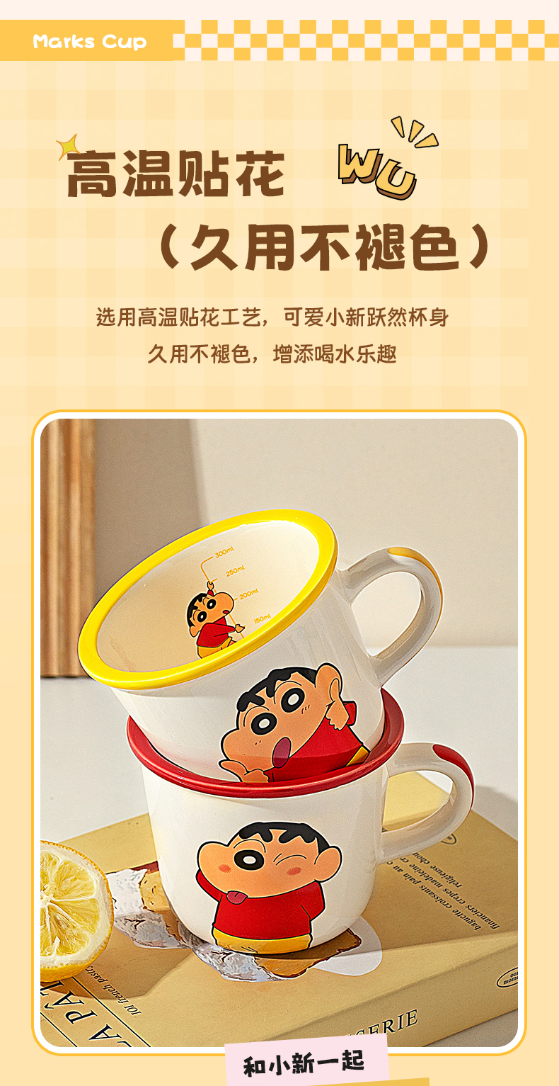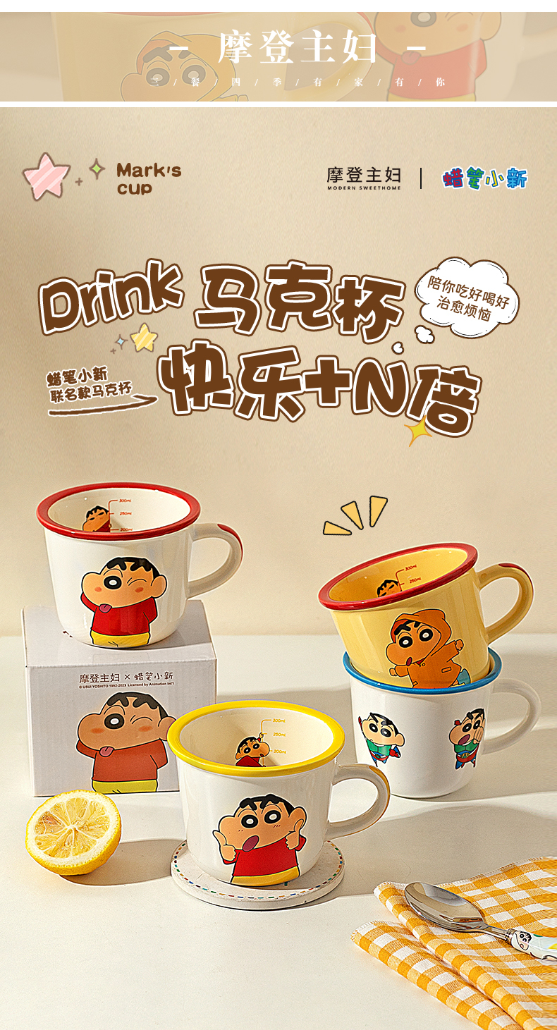 摩登主妇&蜡笔小新 带刻度马克杯家用水杯陶瓷杯子牛奶早餐杯