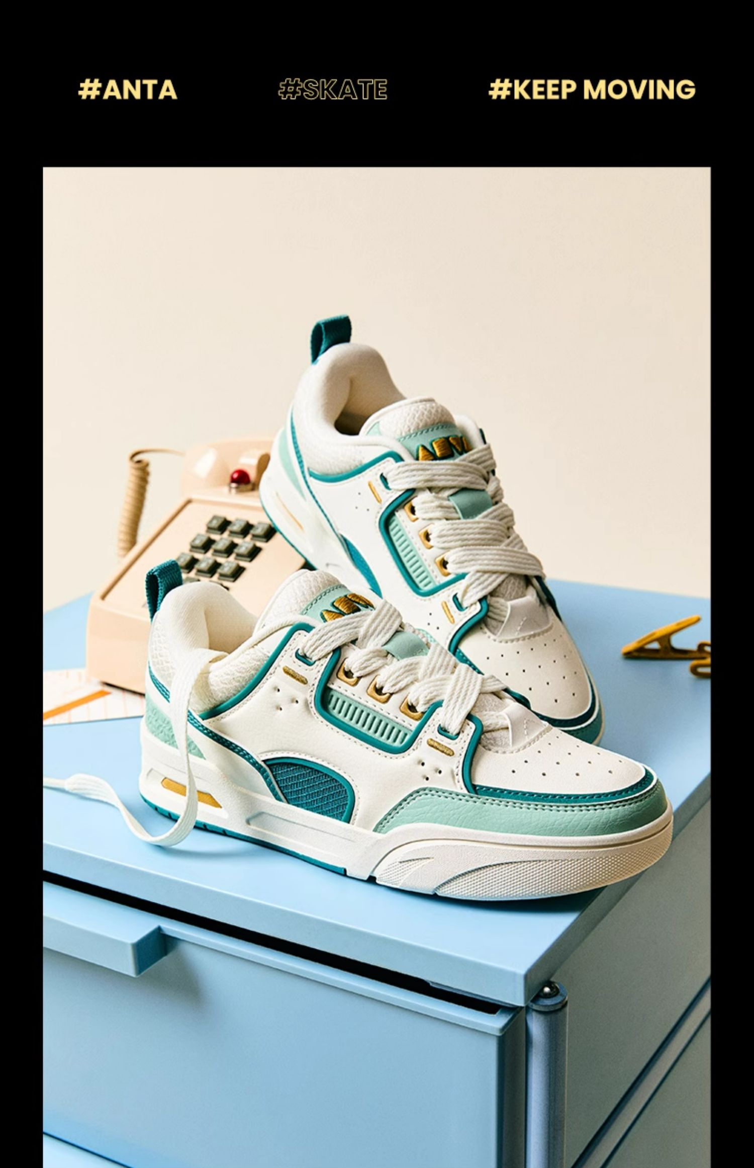 【王一博同款】安踏骜杰丨撞色复古板鞋女鞋运动鞋百搭122518040