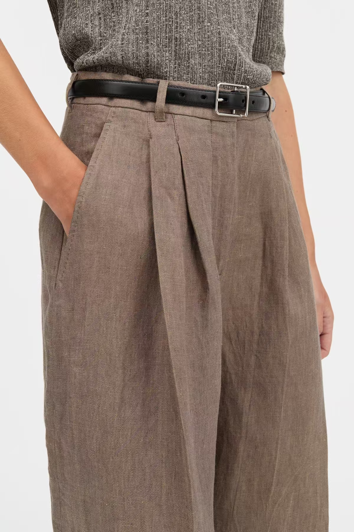 Mark Kenly Domino Tan 26SS 枯木色汉麻PENNIE双褶七分裤