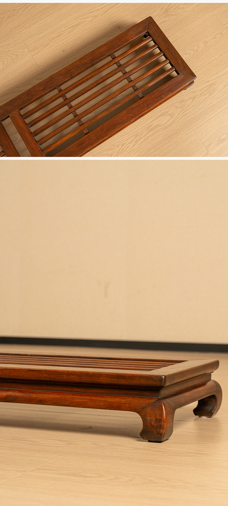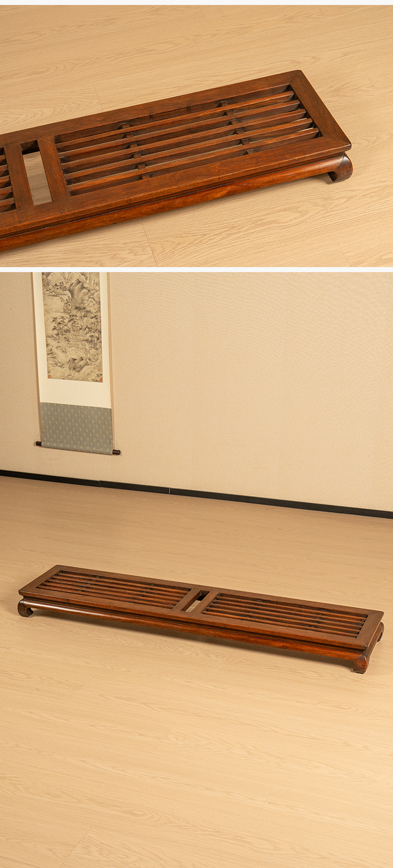清 黄花梨镶绿石透雕螭龙纹大插屏