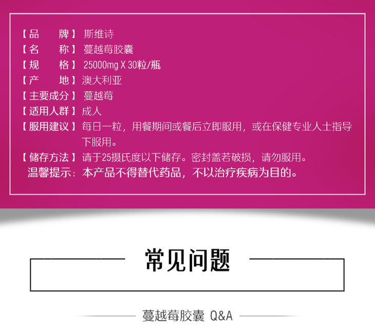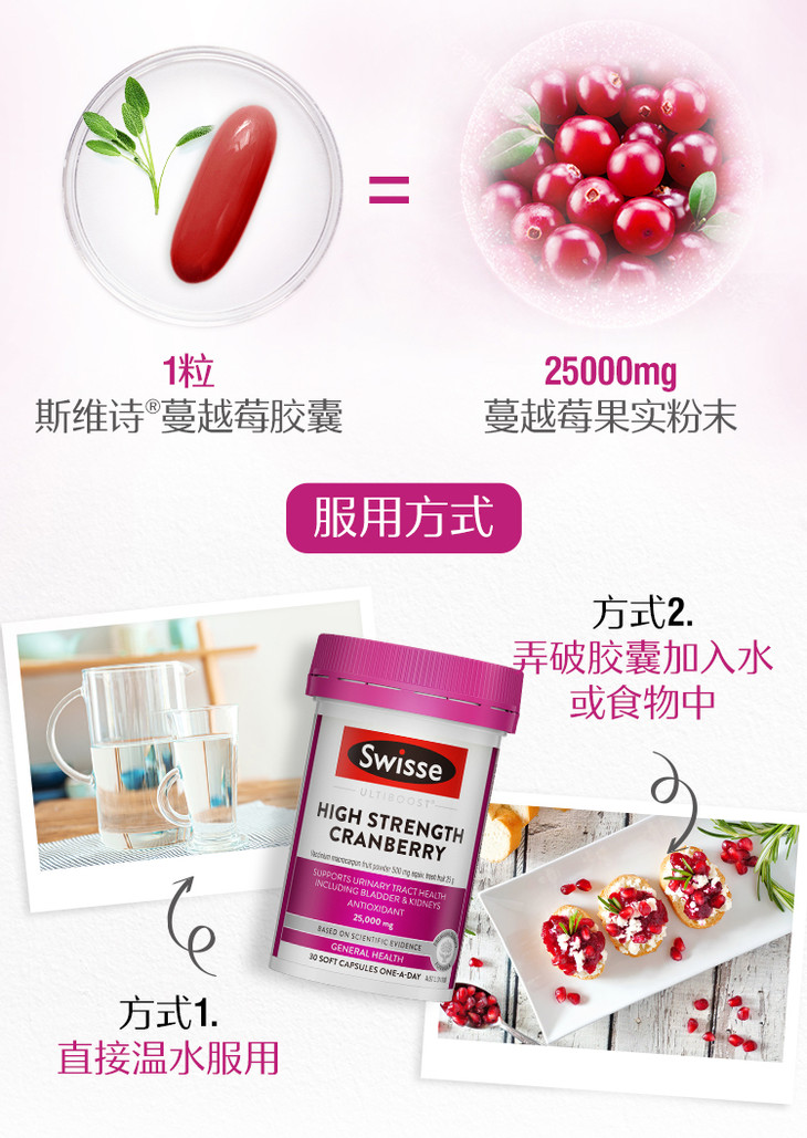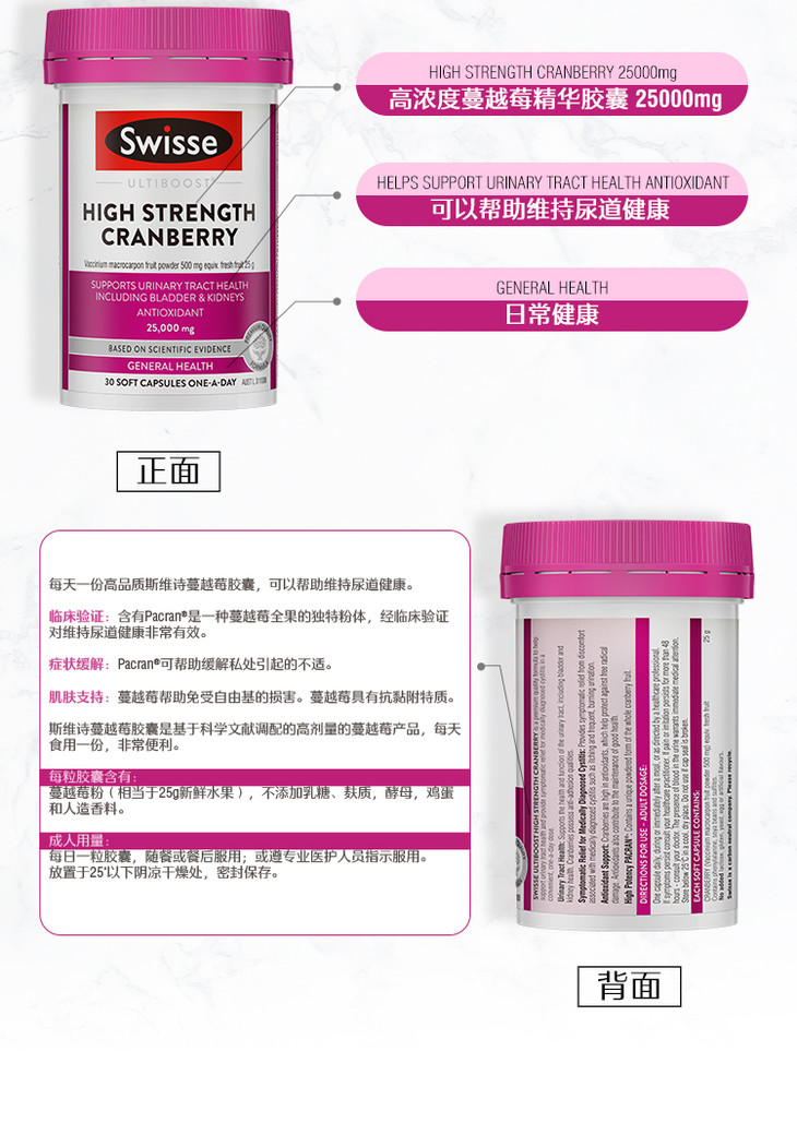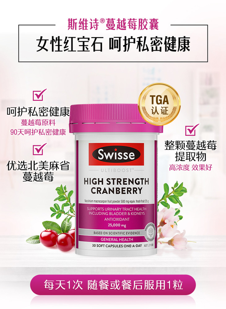Swisse斯维诗小蔓越莓 30粒 呵护女性私处健康 维持尿道健康