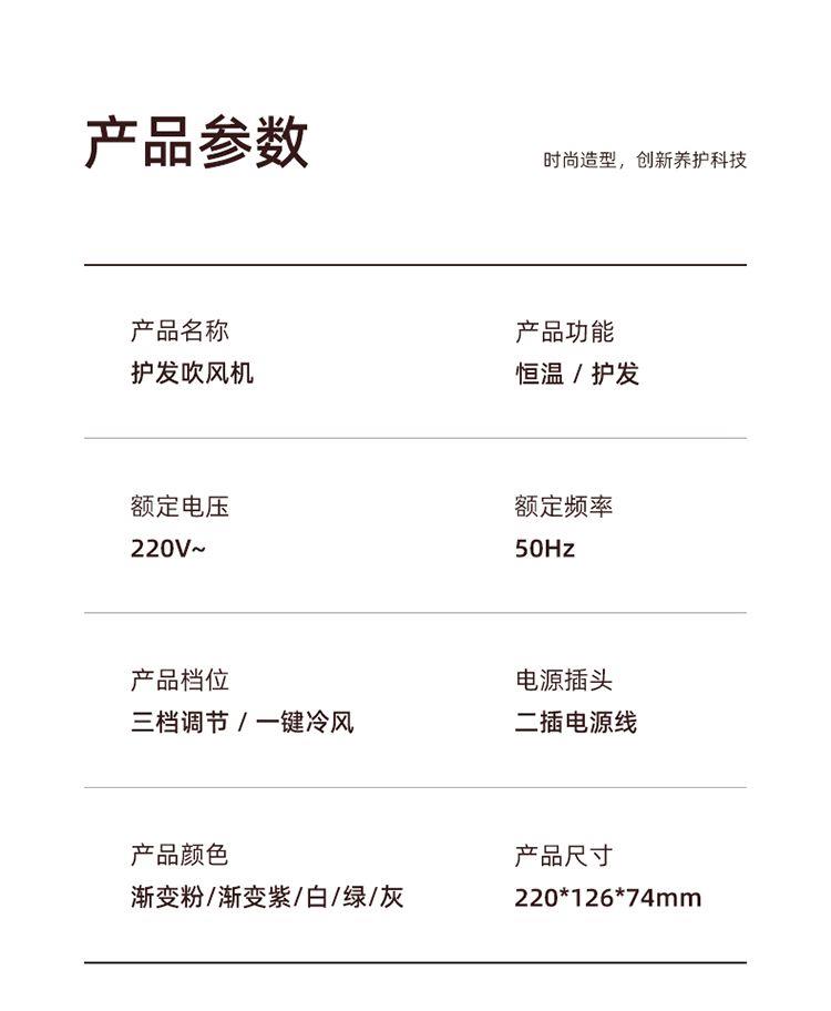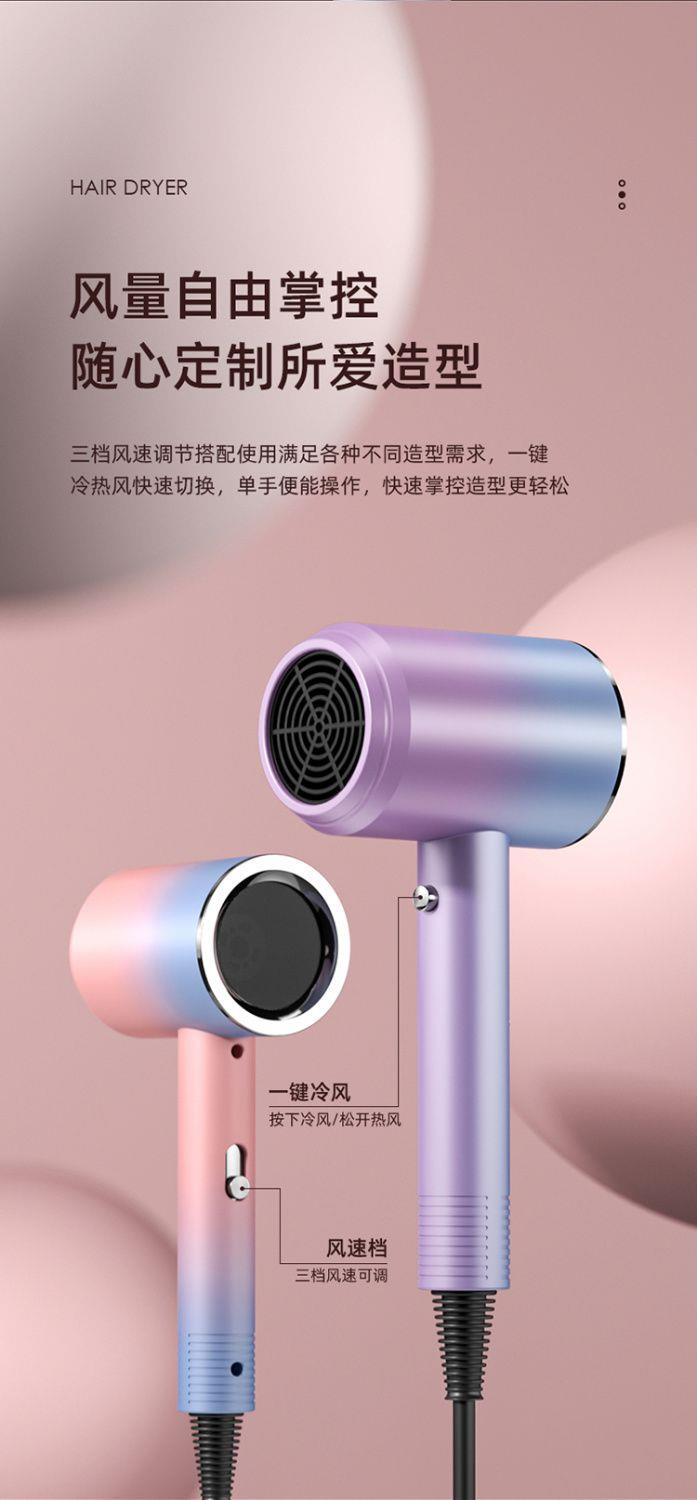 【德系工艺 速干科技吹风机】速干电吹风机 轻巧机身 双重温控护发 静音速干 吹出柔润亮泽 冷热调节 女神节三八节情人节 彩虹色吹风筒-LCCF01