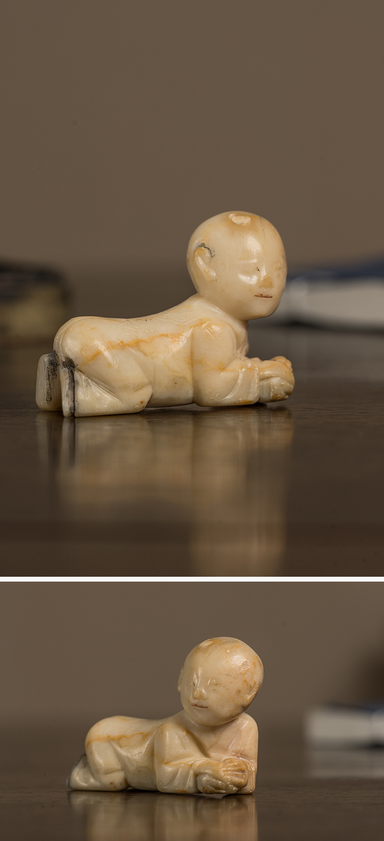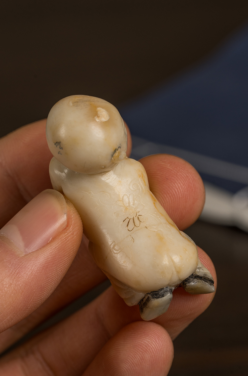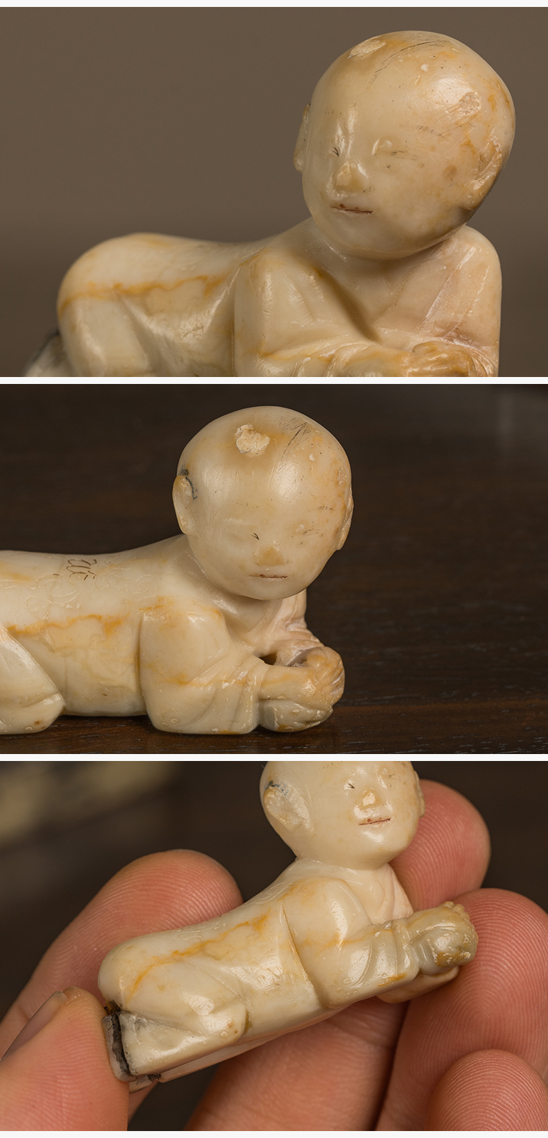 清 寿山石雕童子笔架