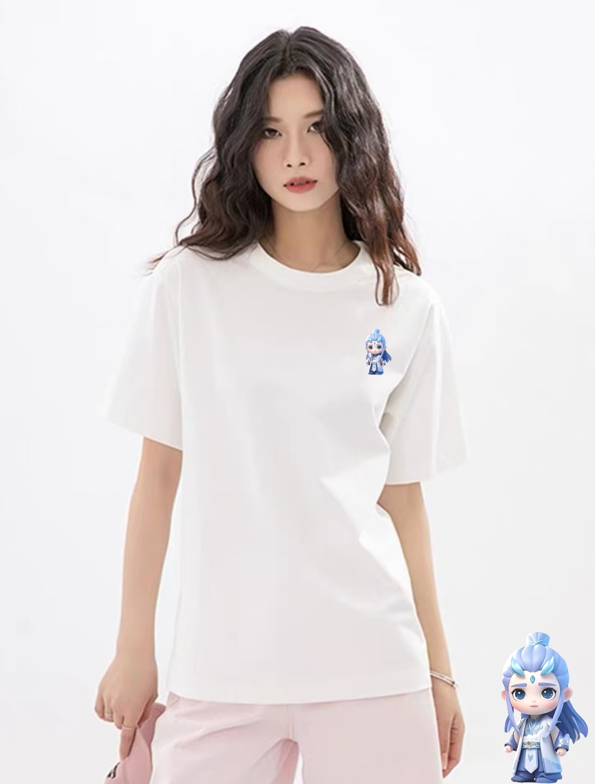 工厂直促价【100%棉】情侣(敖丙-侧标)柯式印花短袖T恤-喜出