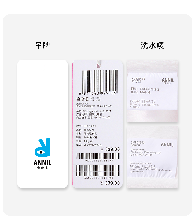 【实体店同款】女童无袖连衣裙夏季新款安奈儿童装XG523653