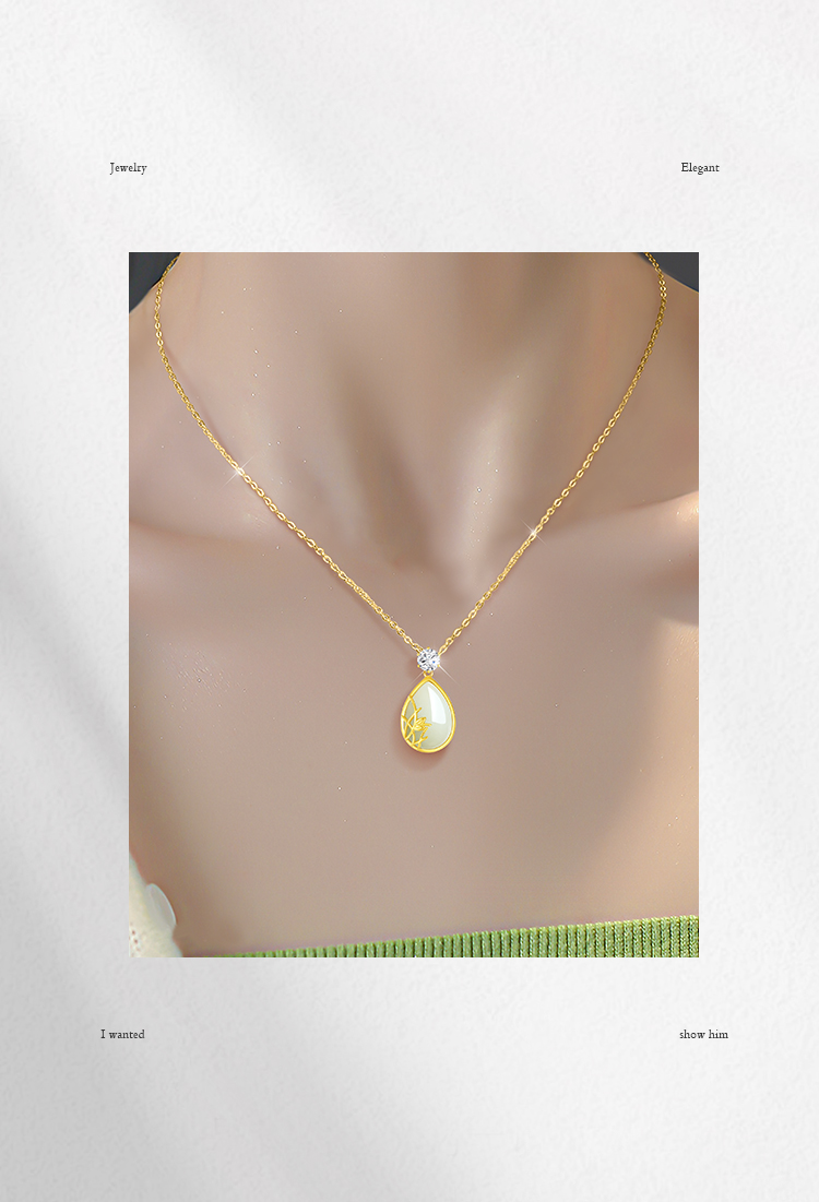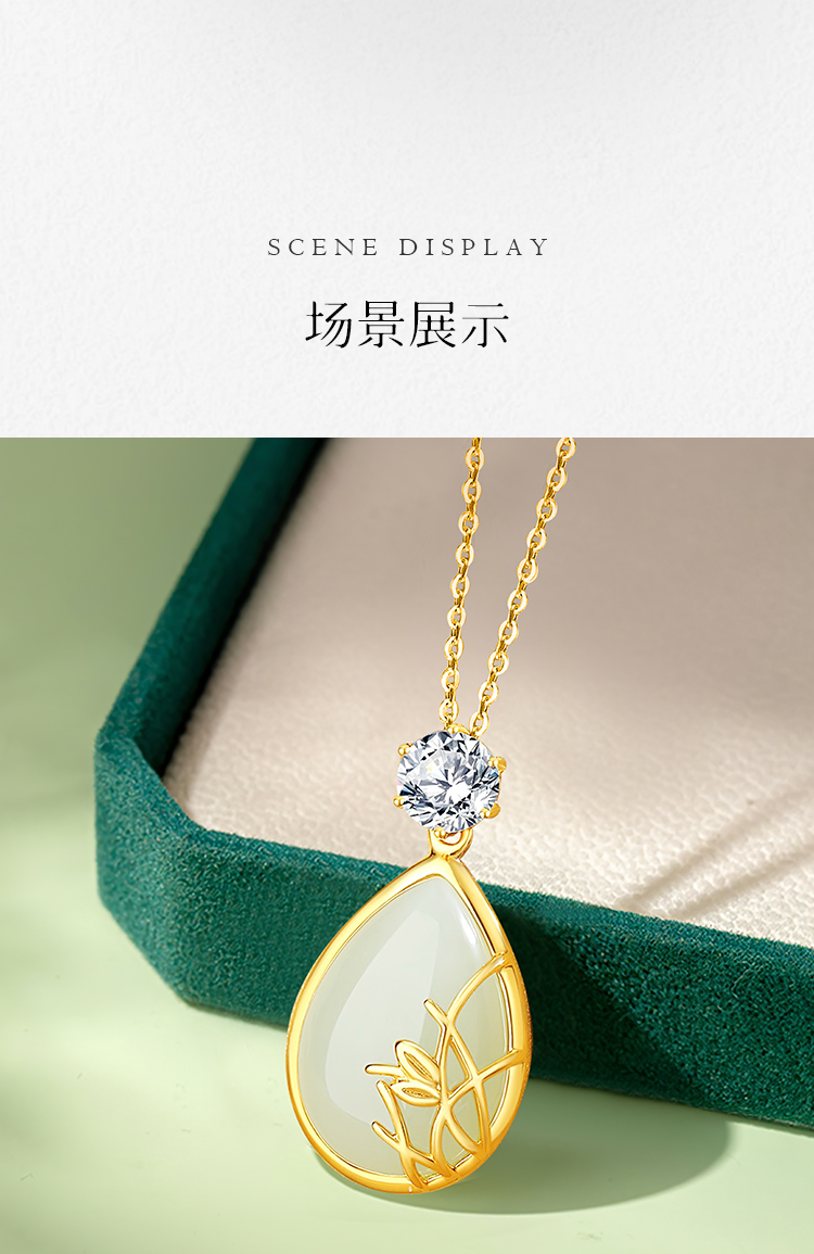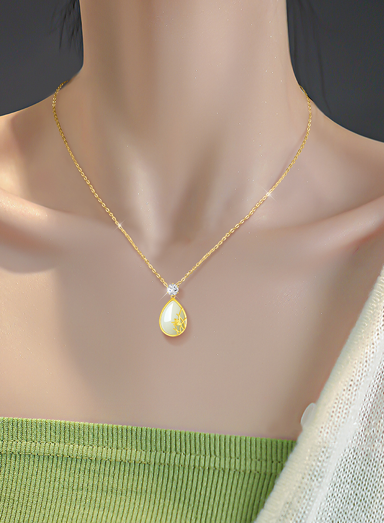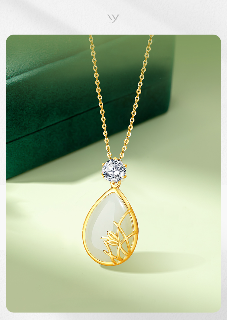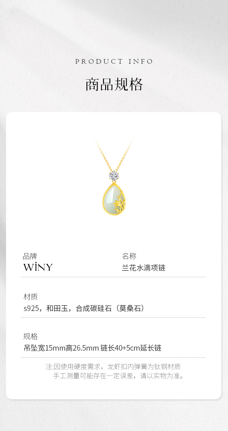 Winy925银兰花水滴和田玉项链镶嵌莫桑石配证书