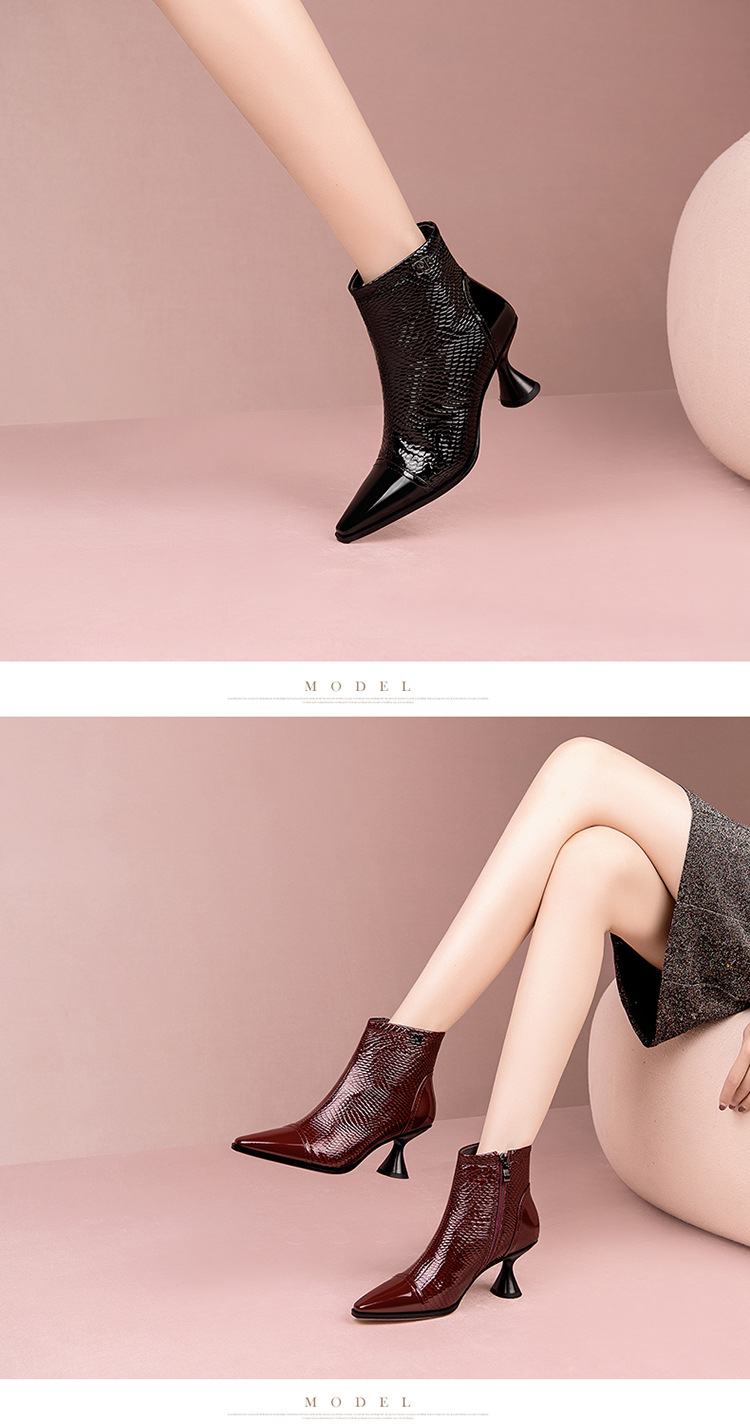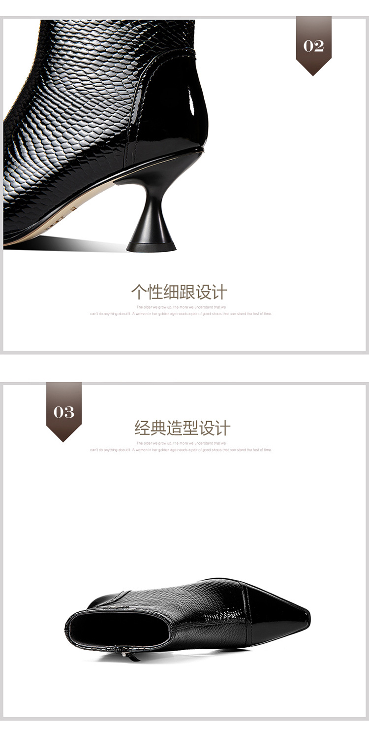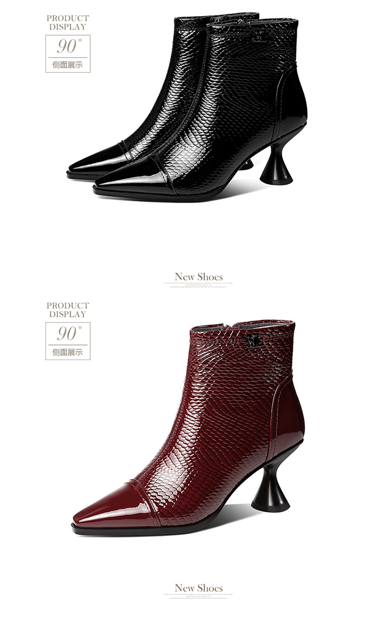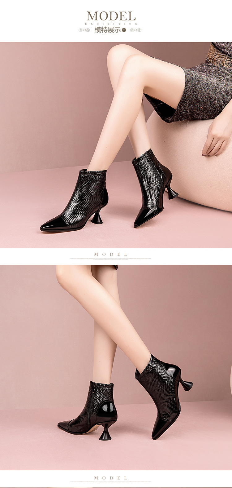 OLD-GX-E008新款时尚气质百搭尖头亮皮高跟短靴