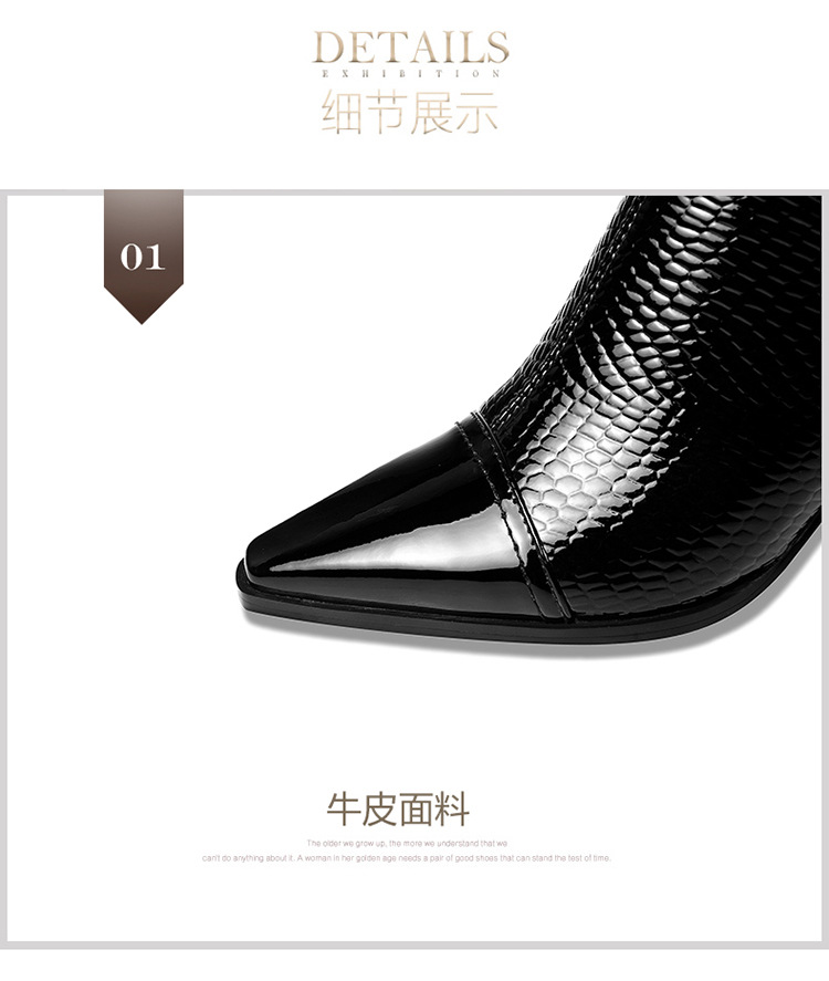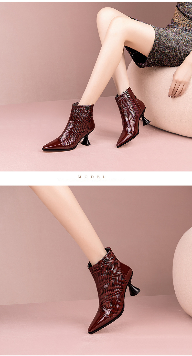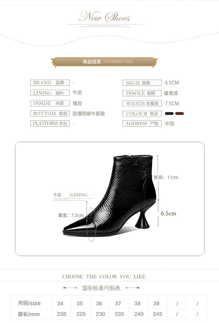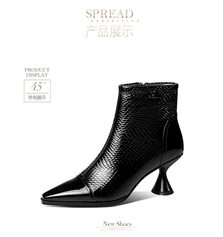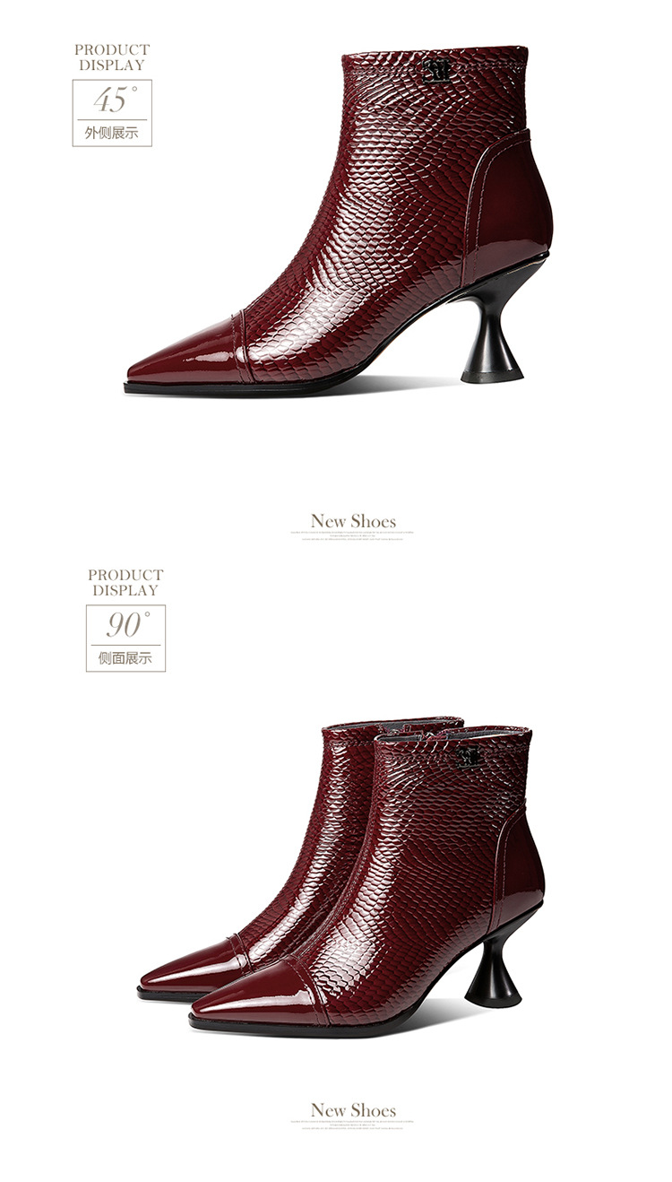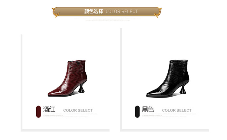OLD-GX-E008新款时尚气质百搭尖头亮皮高跟短靴