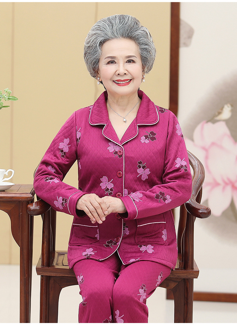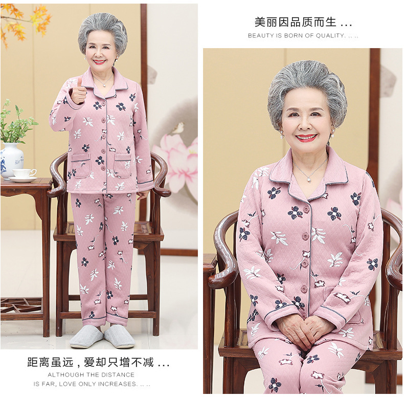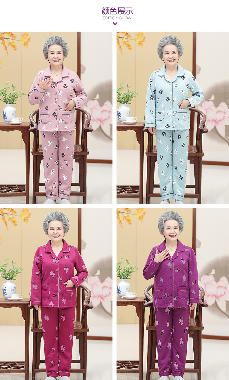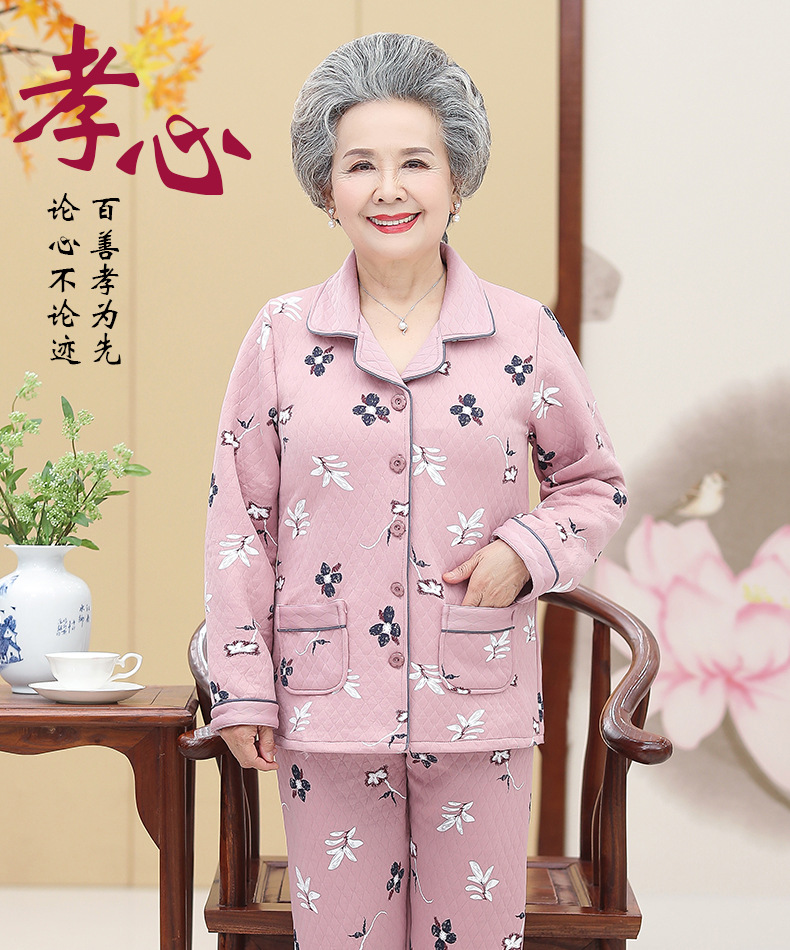 DDZ-NDF218新款优雅气质翻领长袖加棉加厚保暖家居服套装