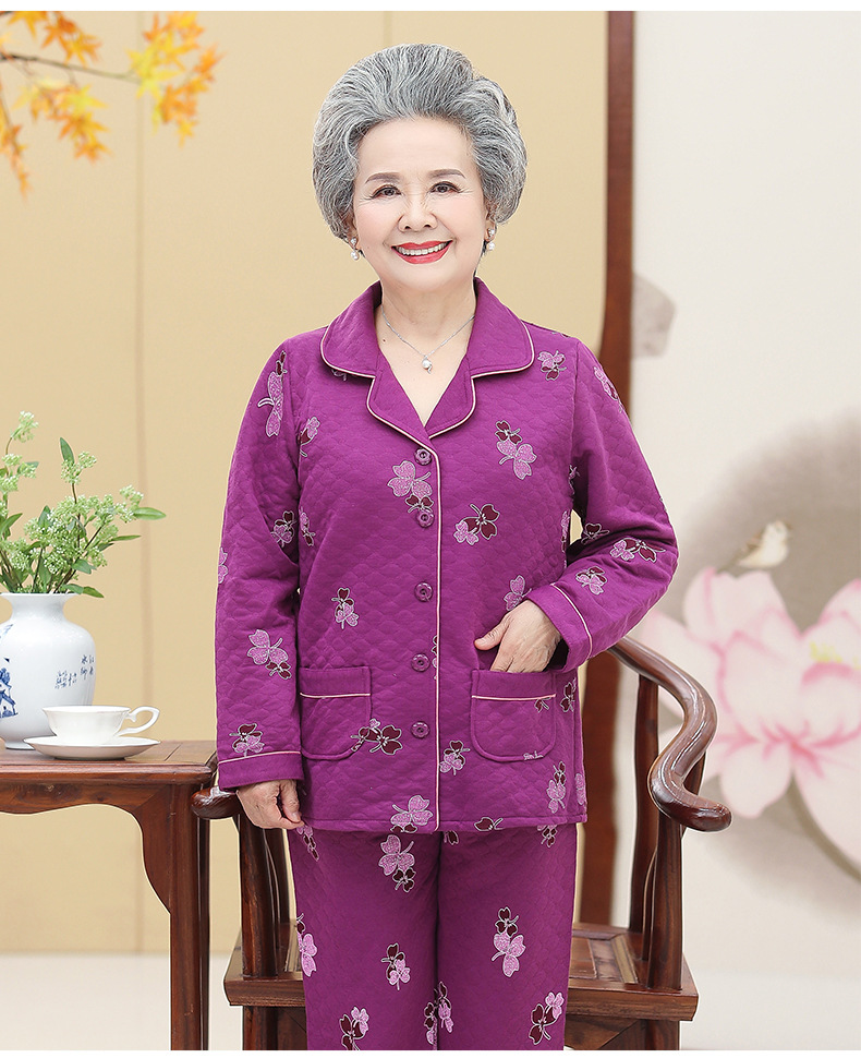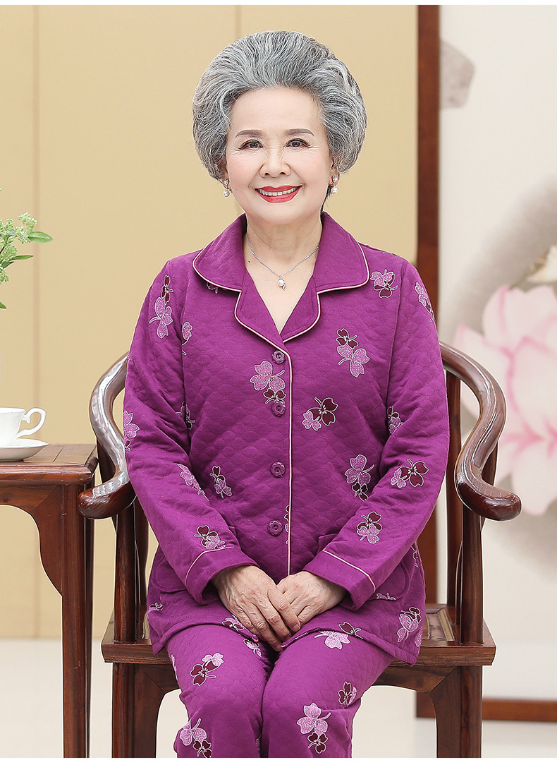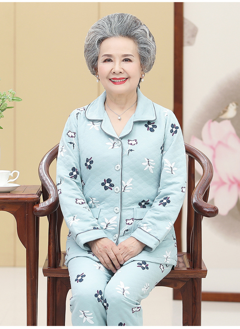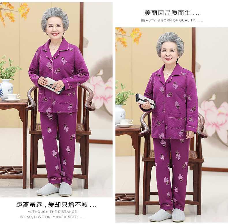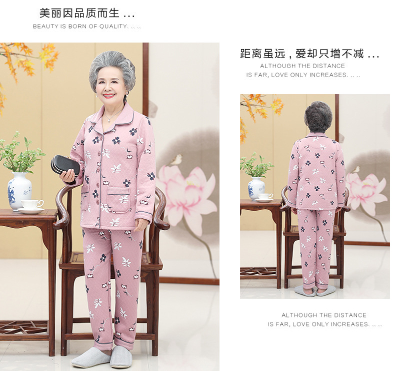DDZ-NDF218新款优雅气质翻领长袖加棉加厚保暖家居服套装