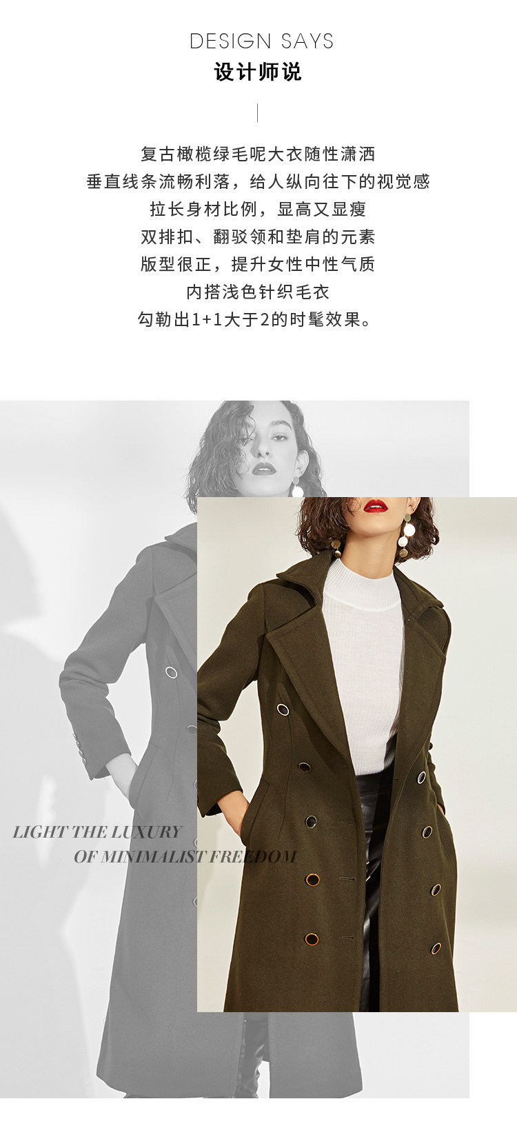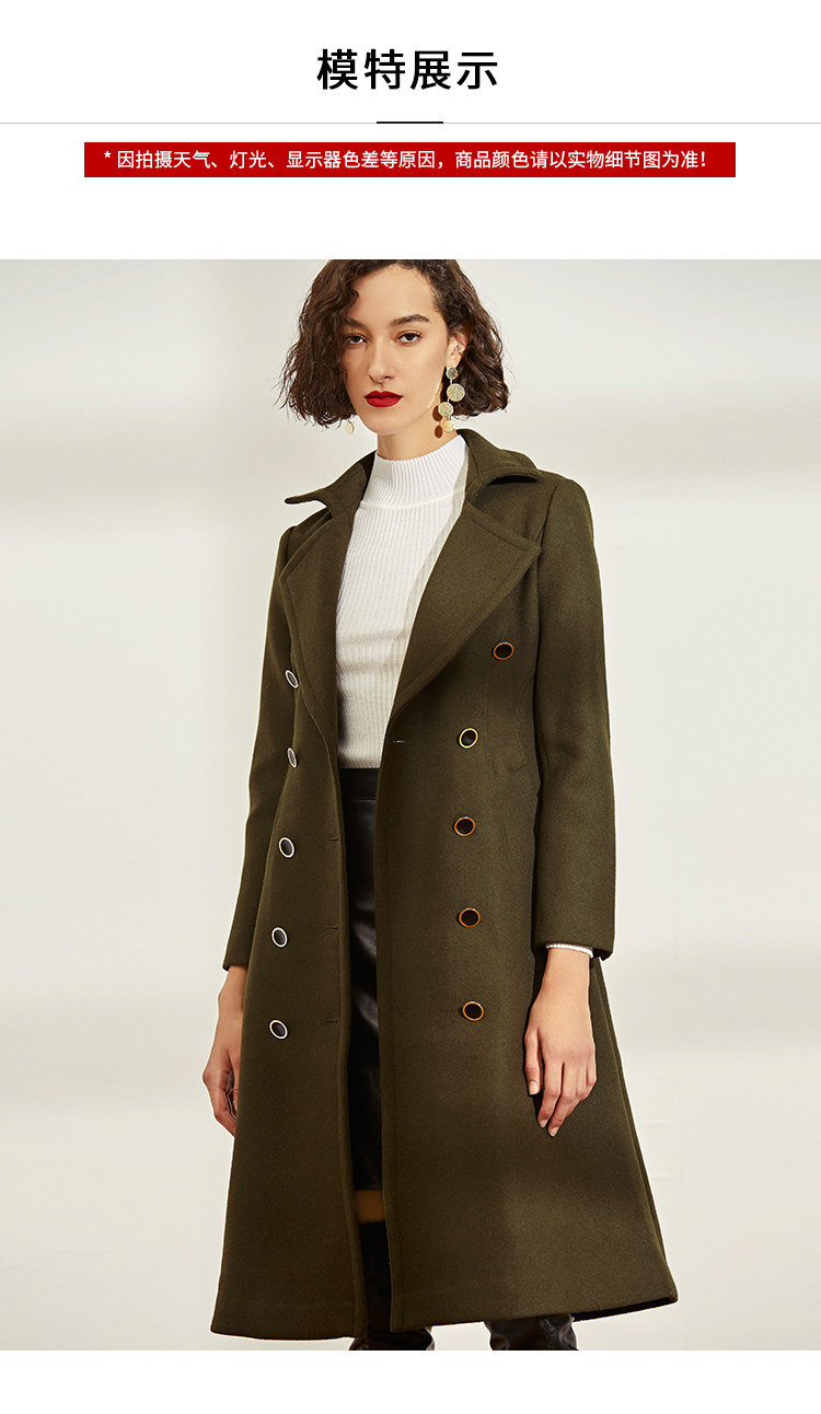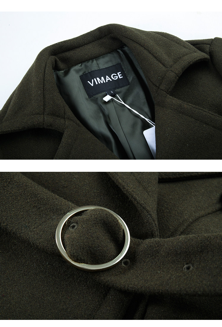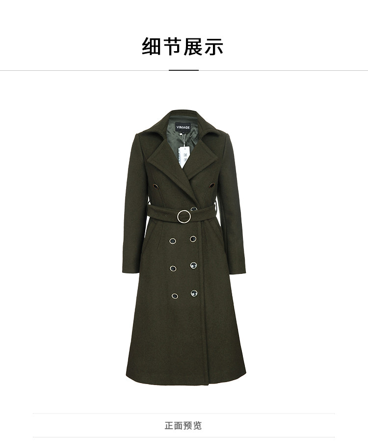VIMAGE纬漫纪秋冬新款帅气英伦风双排扣大衣中长款女外套V1014603