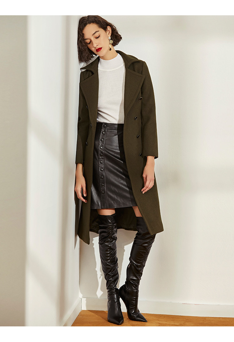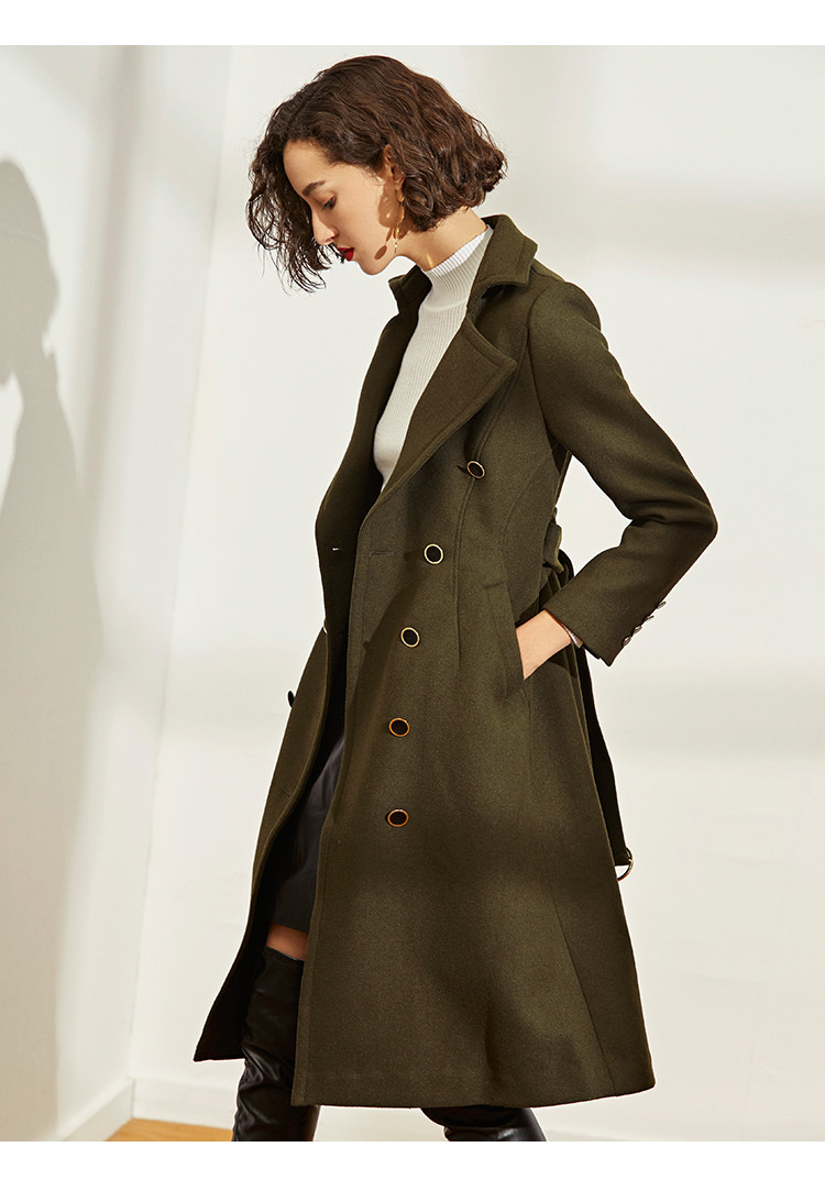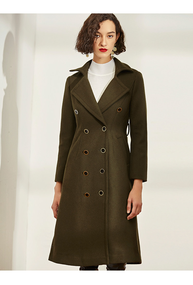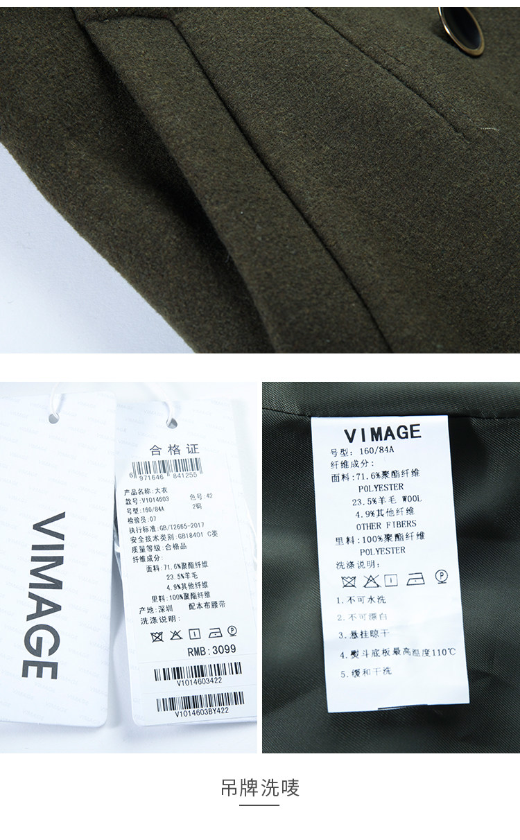 VIMAGE纬漫纪秋冬新款帅气英伦风双排扣大衣中长款女外套V1014603