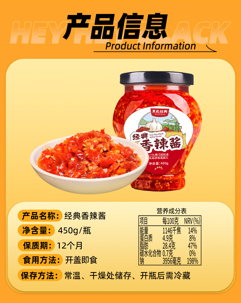 【57.6元任选3件】经典香辣酱450g/瓶 食材原生态 健康美味