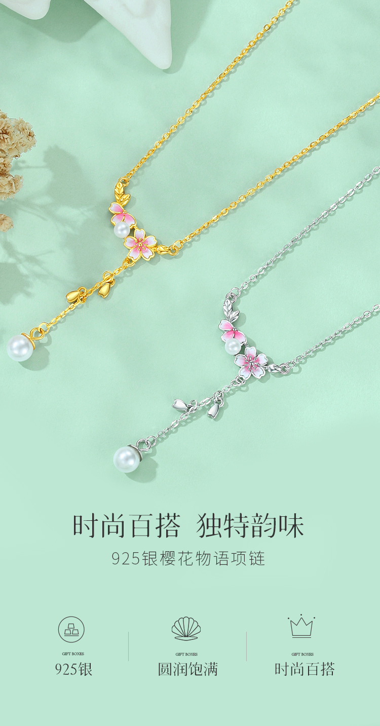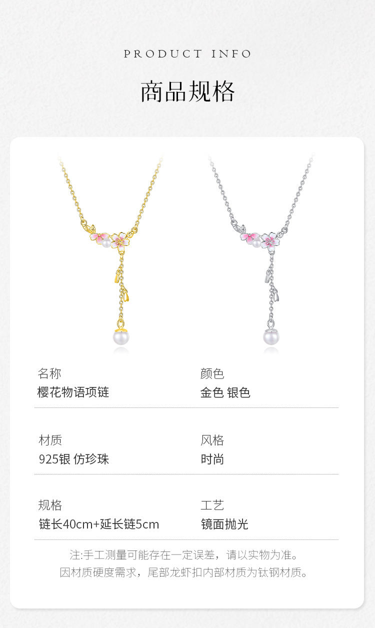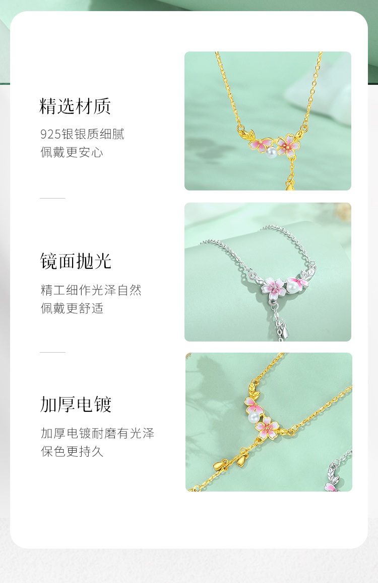 Winy925纯银樱花物语项链送女友闺蜜节日生日礼物