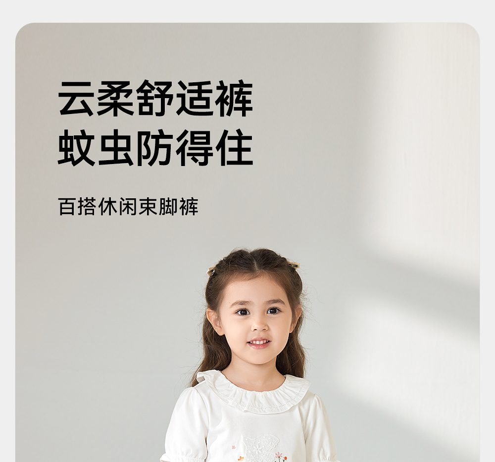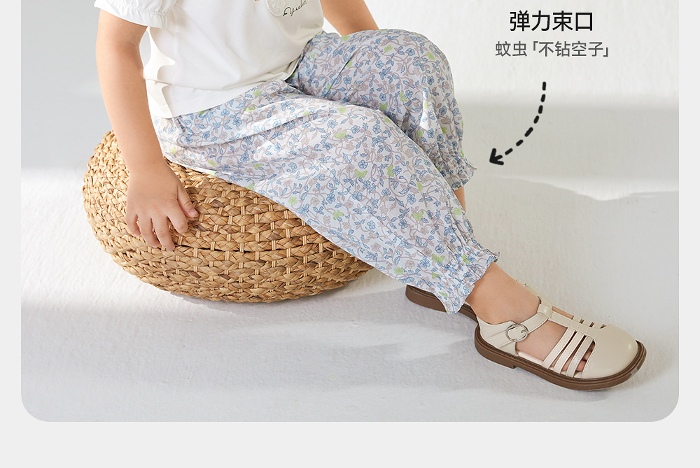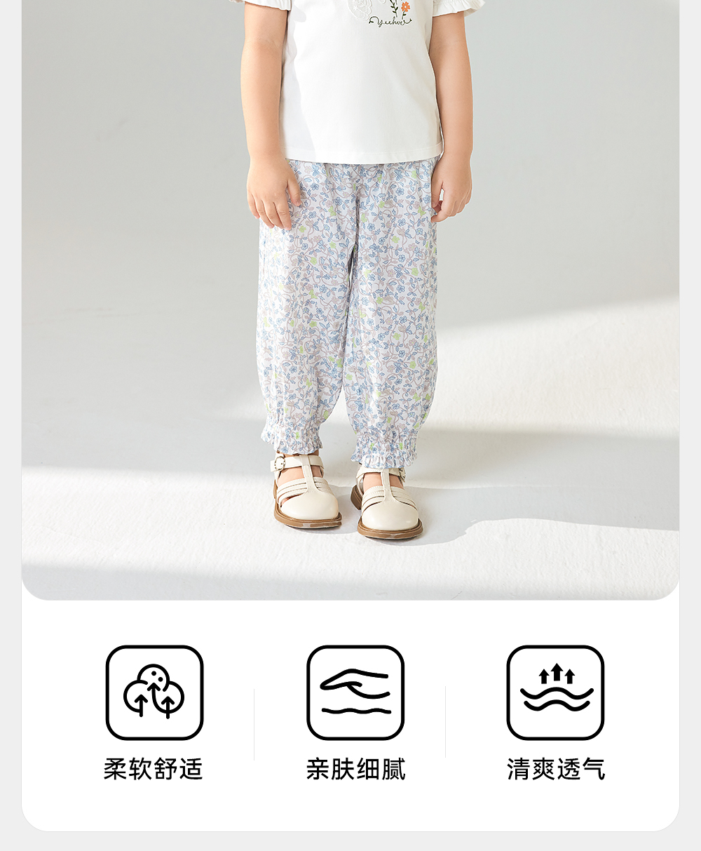 【商场同款】英氏儿童裤子夏季女童透气纯棉防蚊裤2025新款长裤