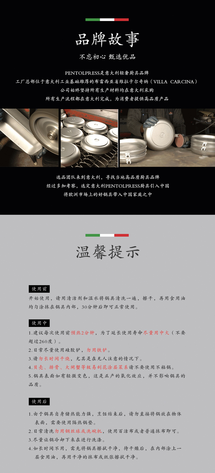 意大利原产PENTOLPRESS朱利安系列平底煎锅20cm(燃气款)