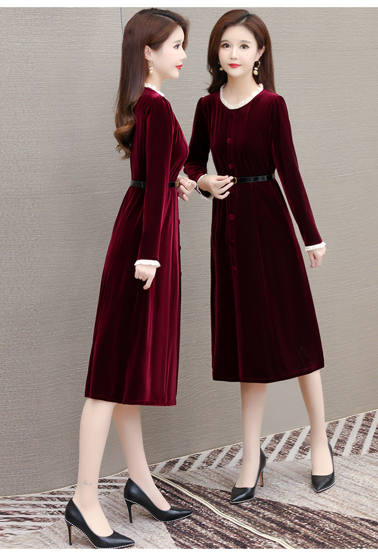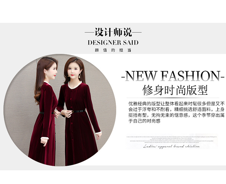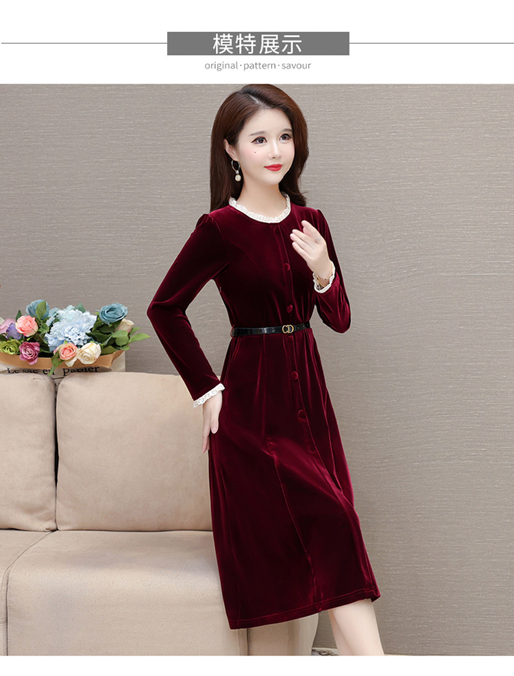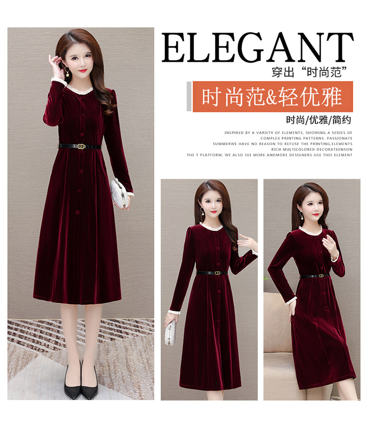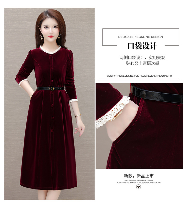 QYM 1315C362-Y连衣裙时尚花边圆领中长款收腰裙 商品图4