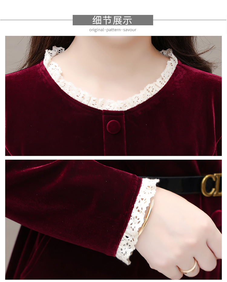 QYM 1315C362-Y连衣裙时尚花边圆领中长款收腰裙 商品图3