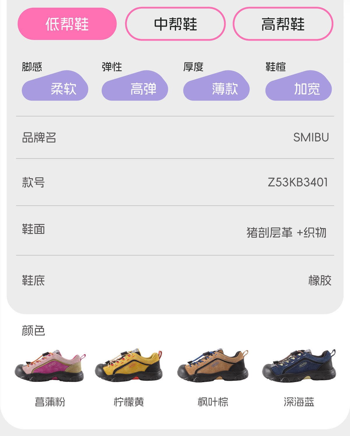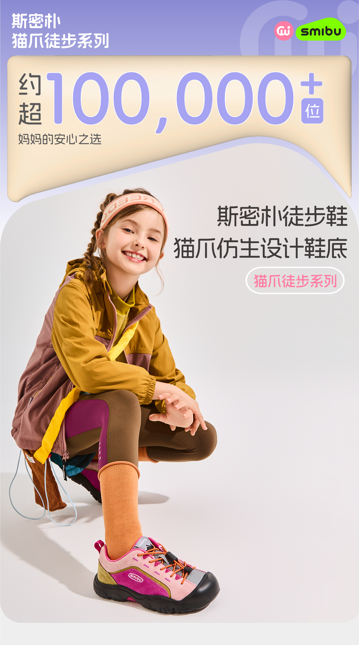 SMIBU猫爪徒步系列男女中大童秋季新款牧野户外运动休闲鞋徒步鞋Z53KB3401【CC爸妈团购】