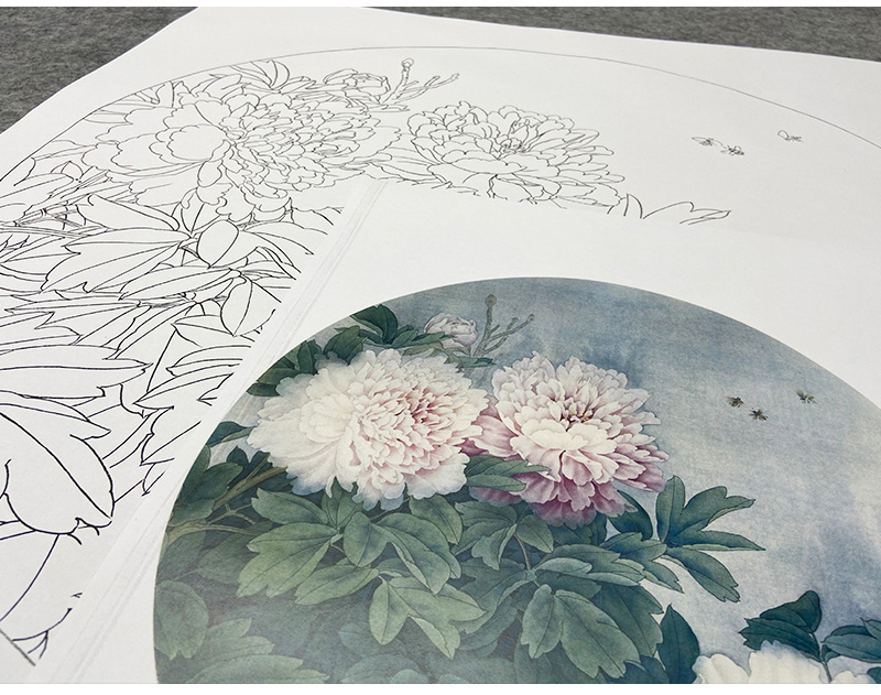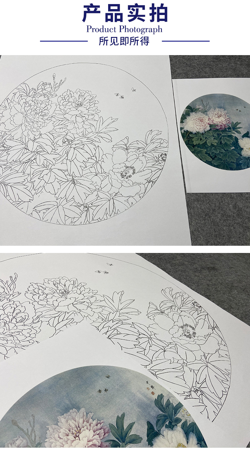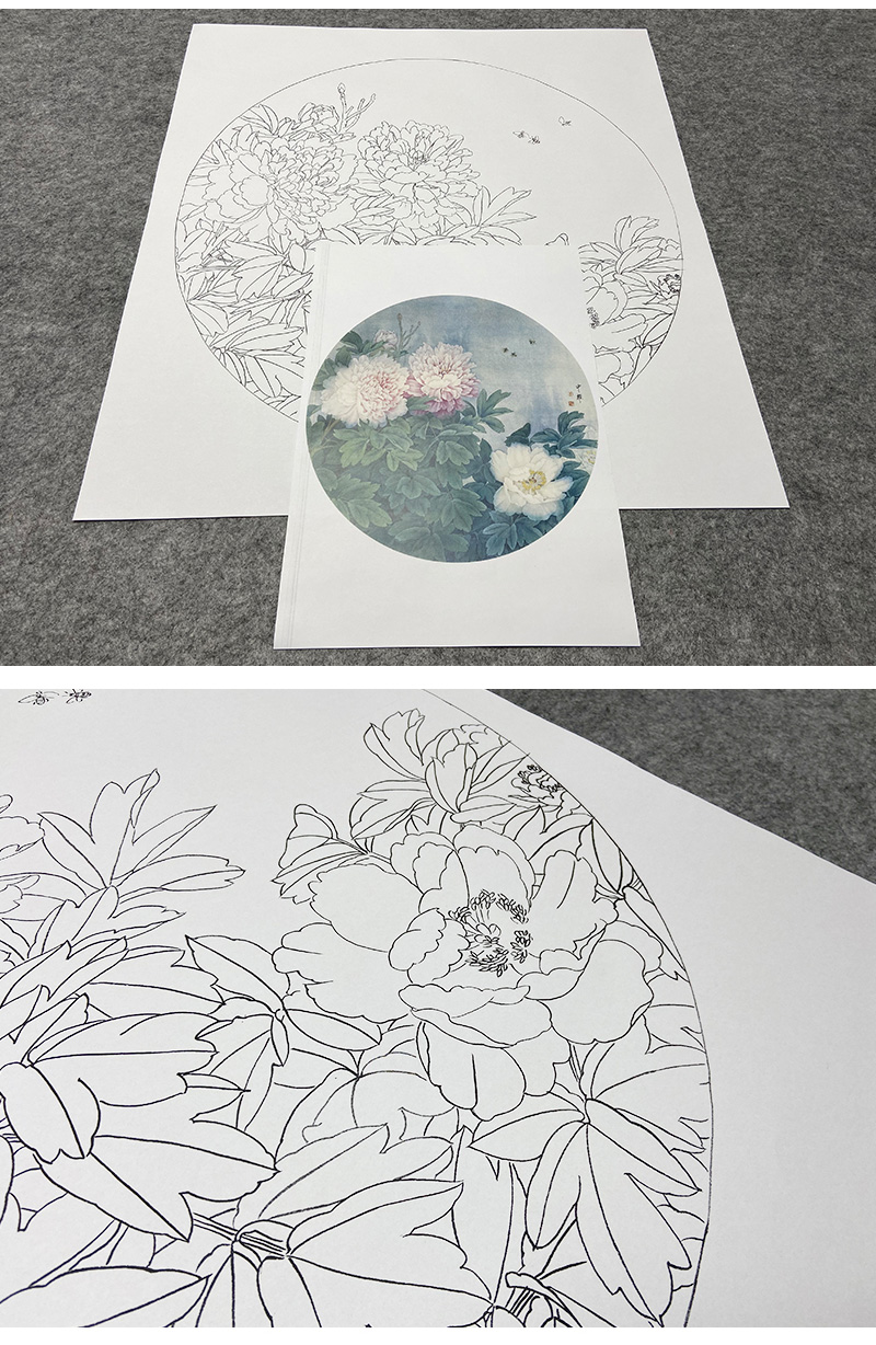 周中耀工笔花鸟白描底稿牡丹小品《春日融融》临摹勾线高清打印稿ZY03