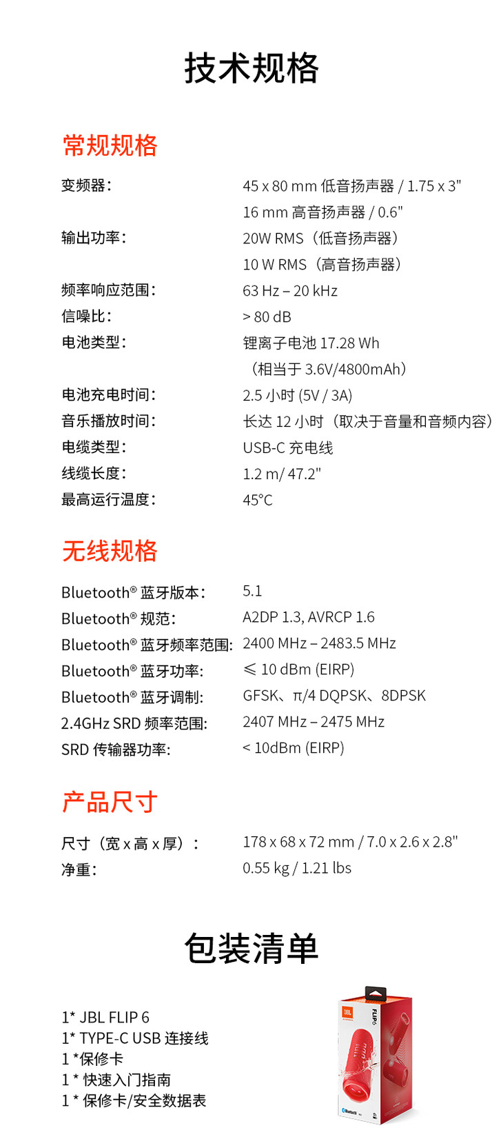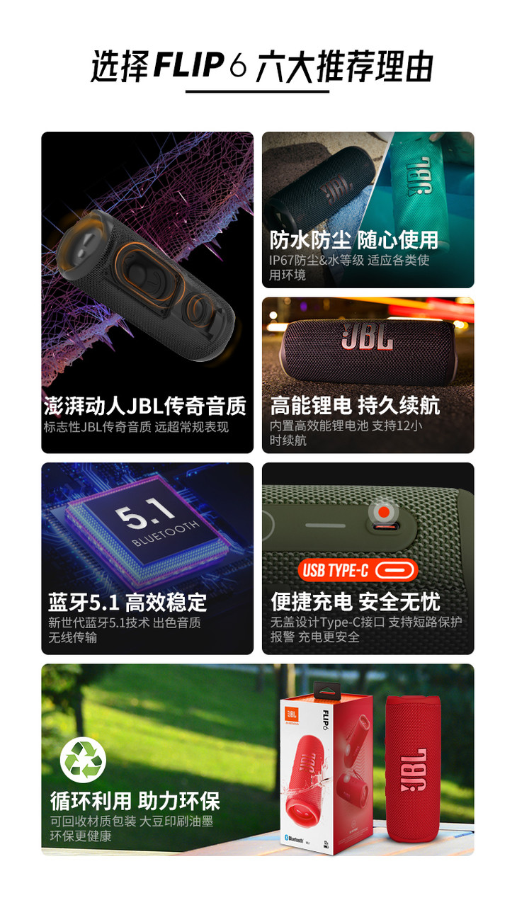JBL FLIP6 音乐万花筒六代 便携式蓝牙音箱