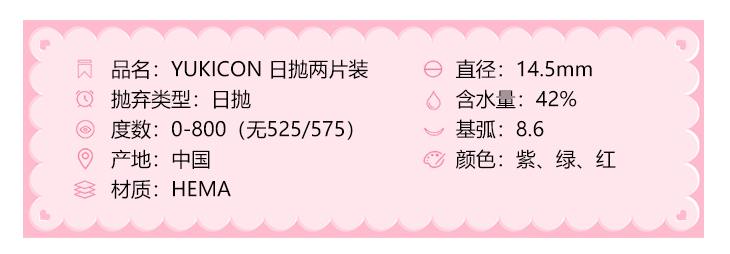 Yukicon日抛隐形眼镜 幽灵红/幽灵绿/幽灵紫 1盒/2片