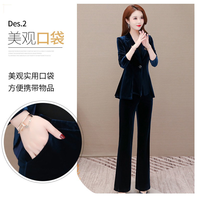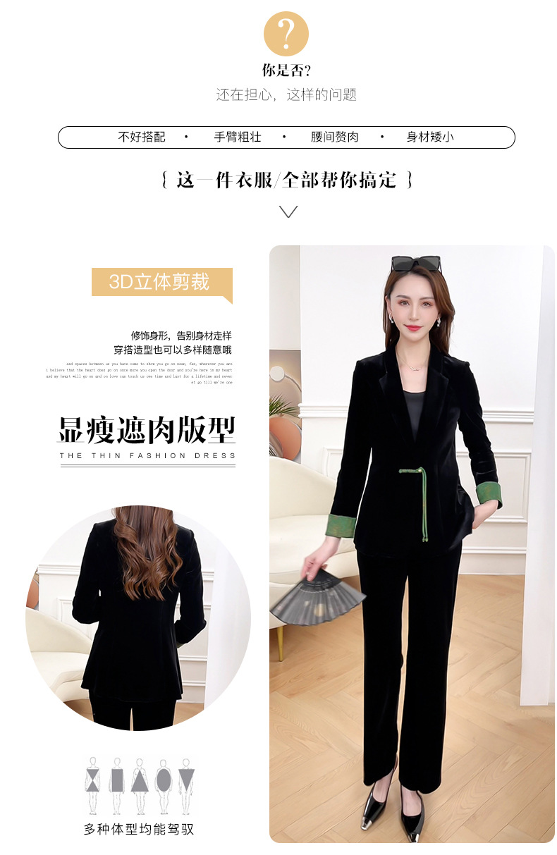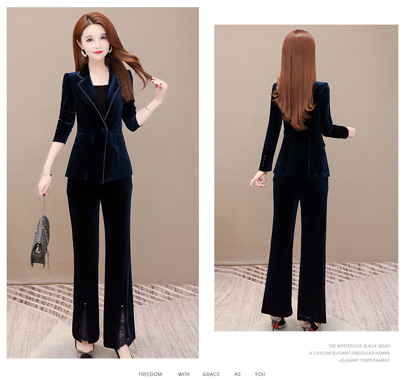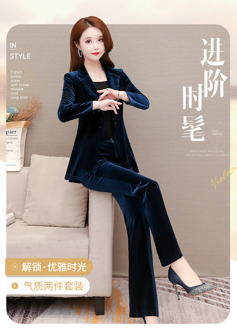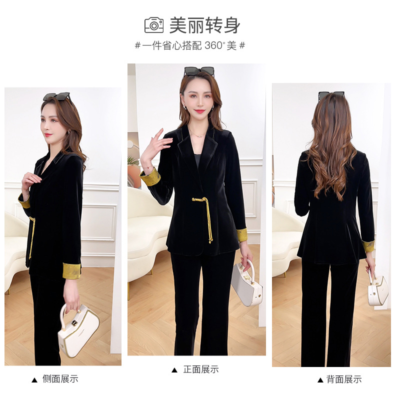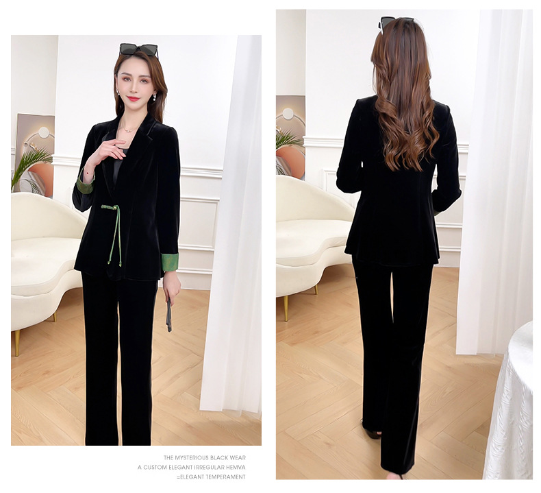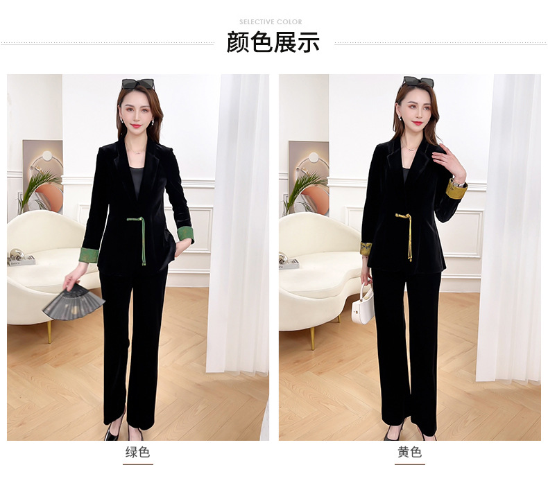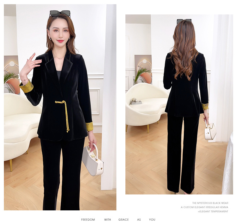 金丝绒小西装套装女2025年秋季新款洋气修身西服阔腿裤气质两件套