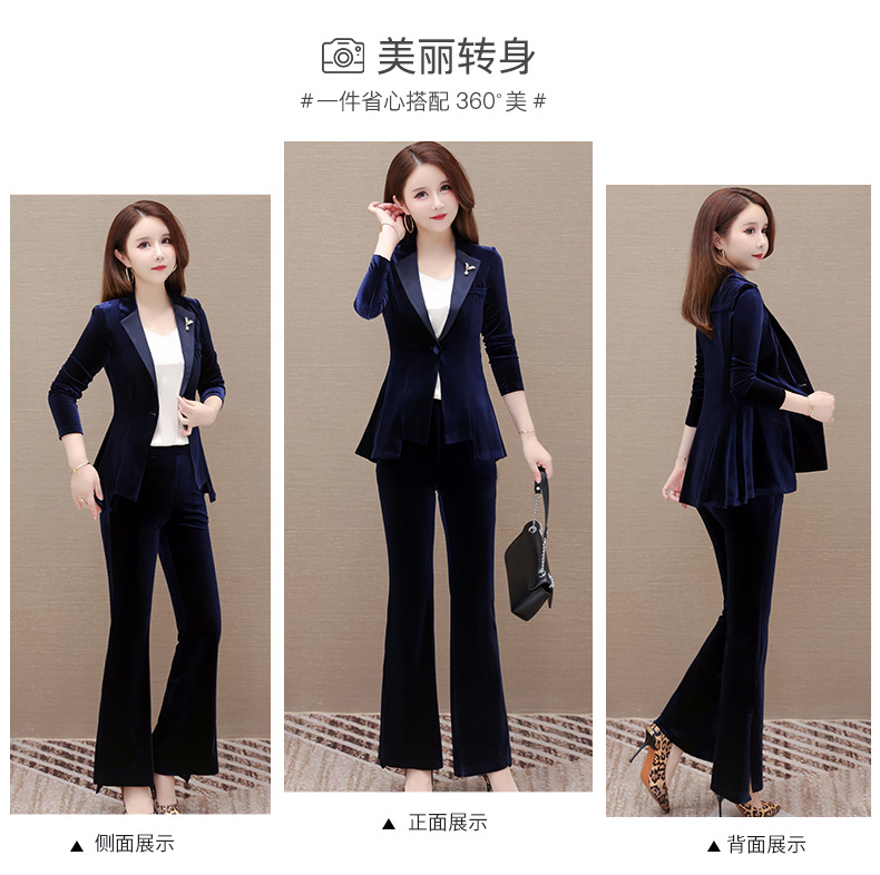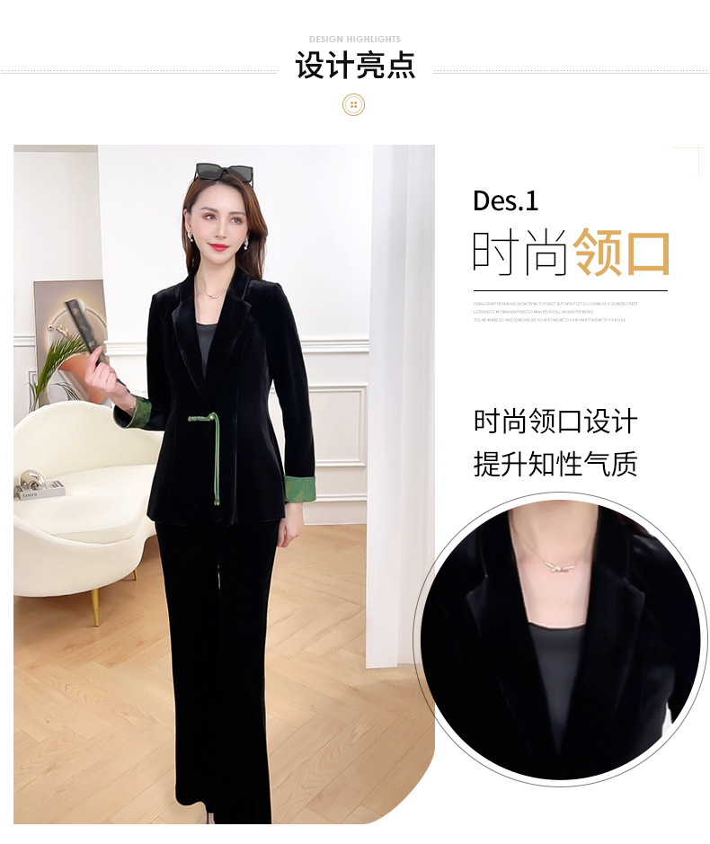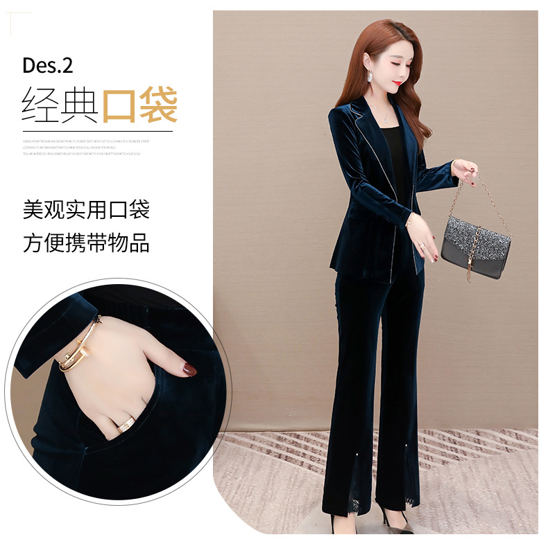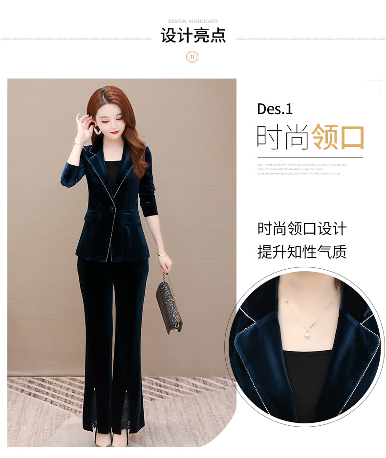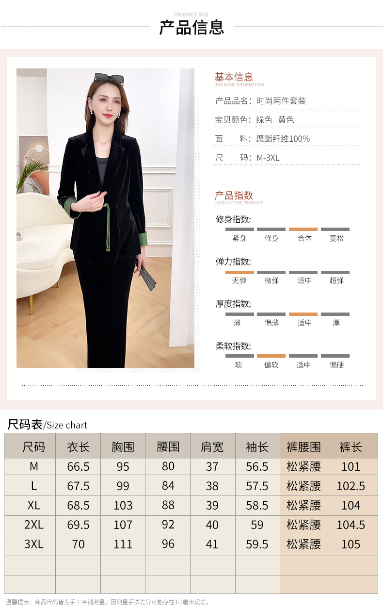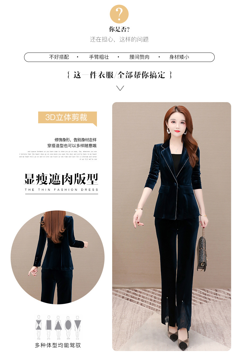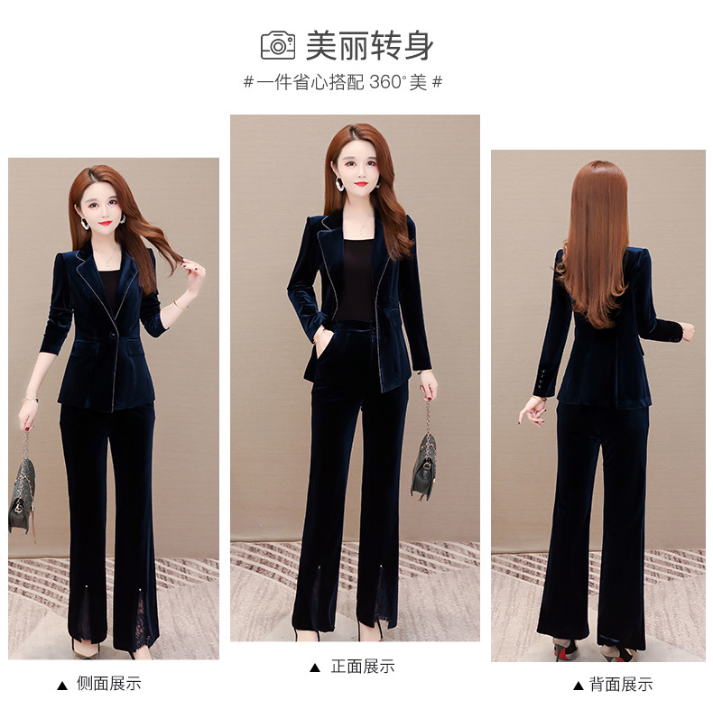 金丝绒小西装套装女2025年秋季新款洋气修身西服阔腿裤气质两件套