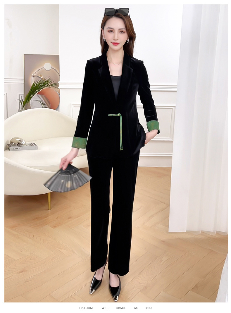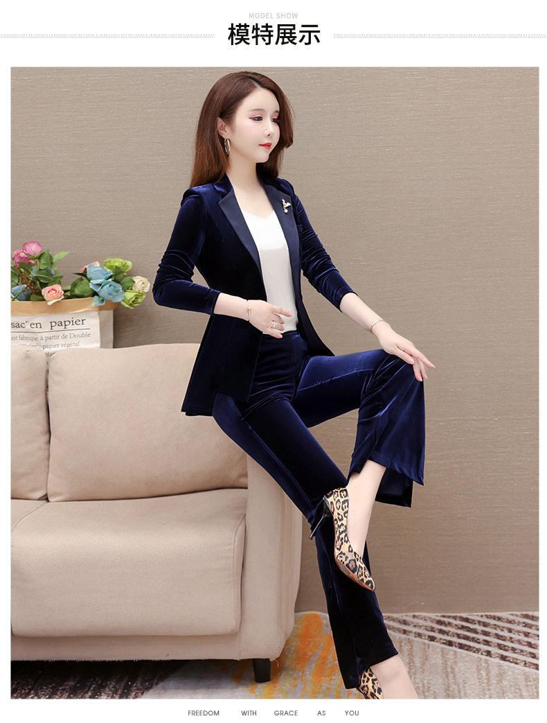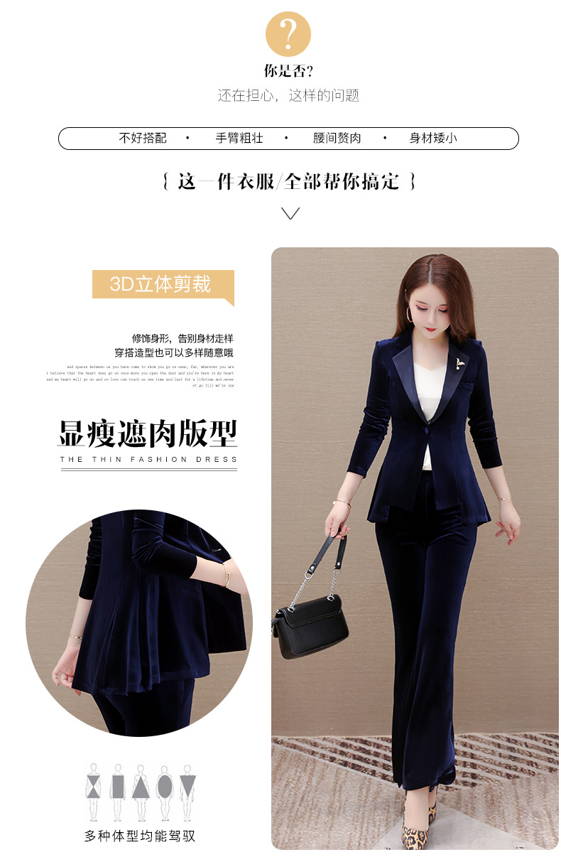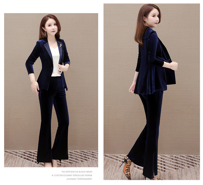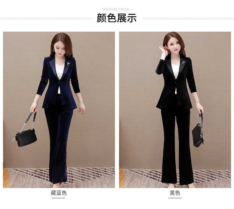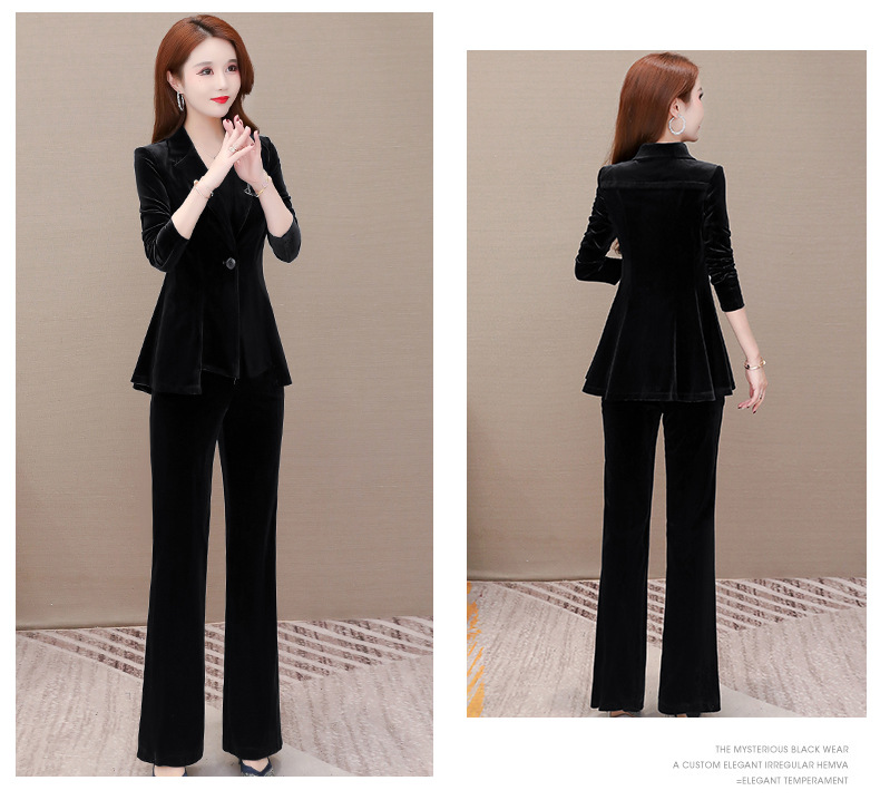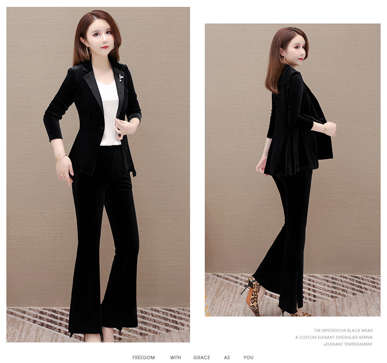 金丝绒小西装套装女2025年秋季新款洋气修身西服阔腿裤气质两件套
