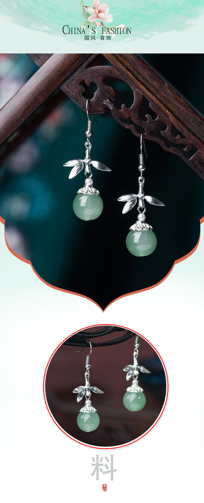 JGL-03220307古风竹节耳环古装耳饰云南民族风耳饰地摊饰品小清新耳环吊坠