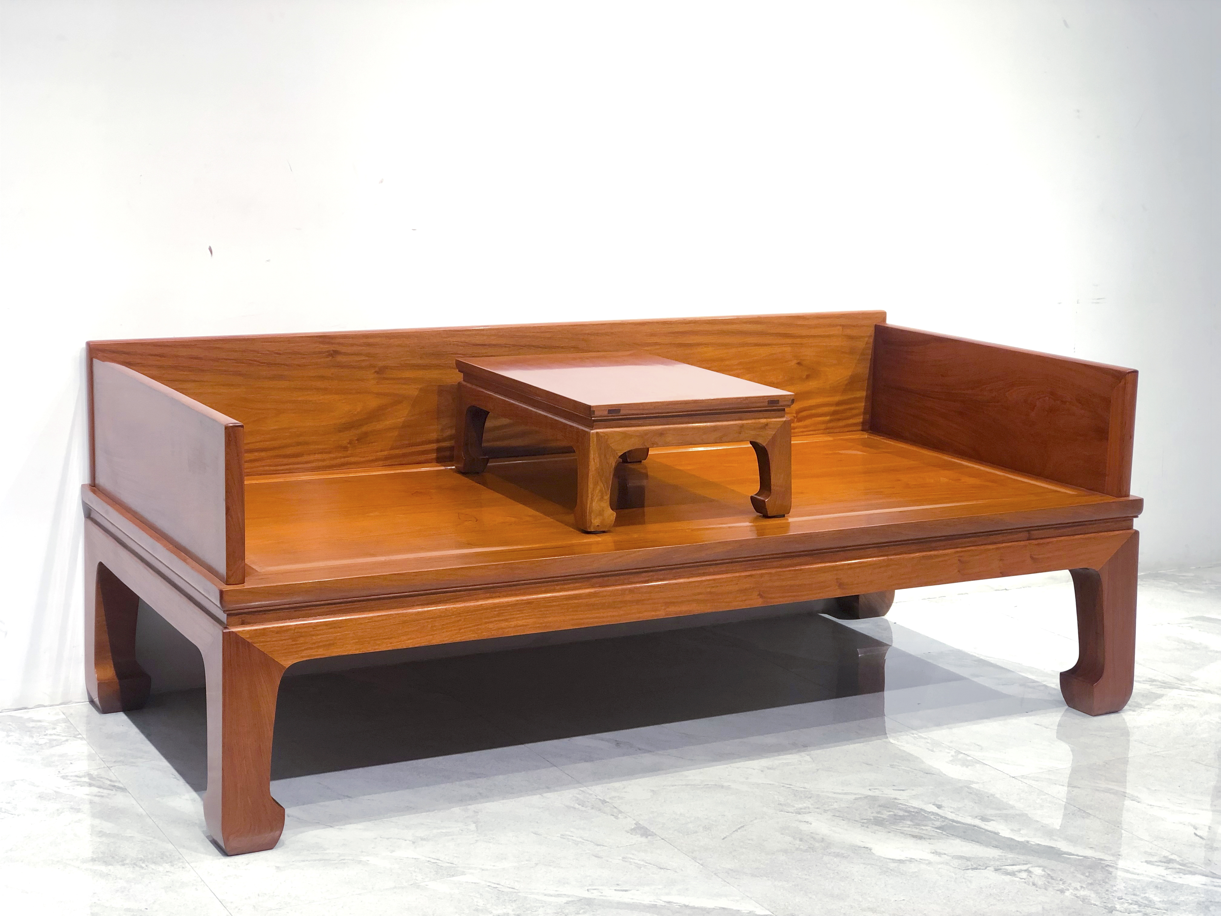 罗汉床搭配小炕几,几面可置花瓶,茶具,果盘、小书等,闲暇时与好友对坐品茗,笑谈古今。